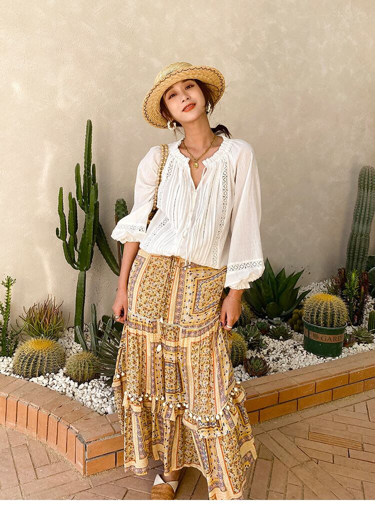 ボヘミアンスタイルにでルースな雰囲気で着てもおしゃれ。