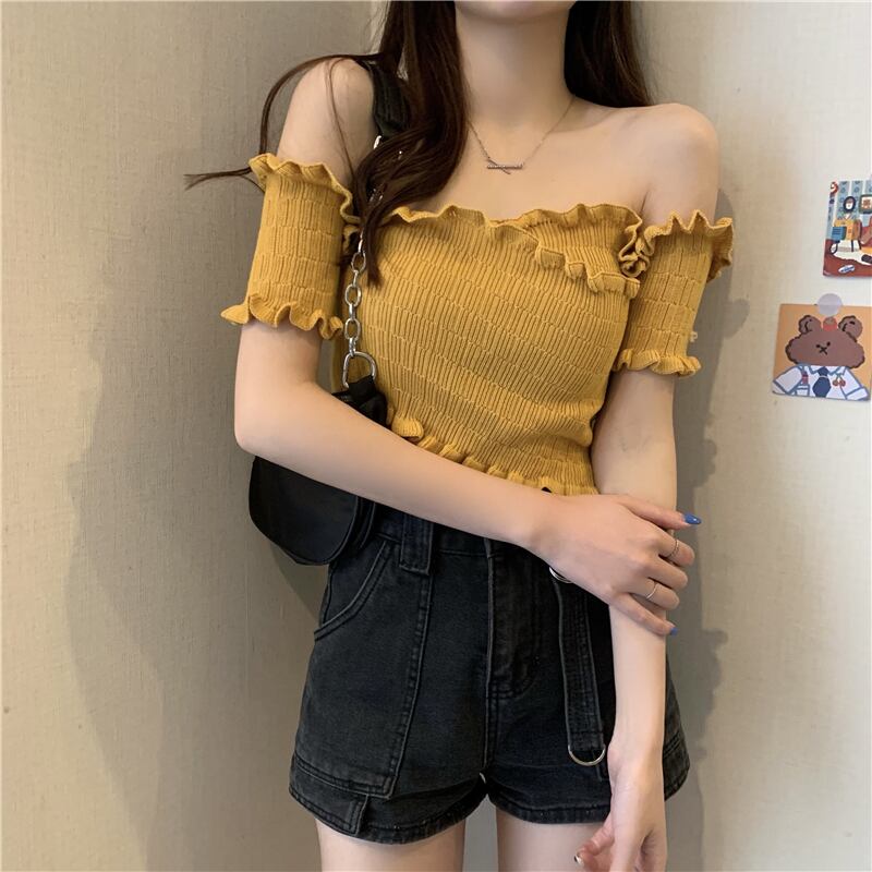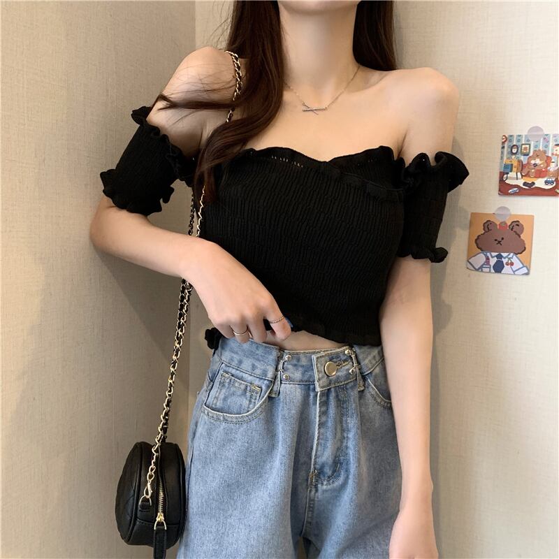 オフショルトップス トップス ニットソー セーター ショート ショート丈 袖あり 半袖 オフショルダー オフショル フリル かわいい 大人可愛い きれいめ シンプル カジュアル 大人 上品 おしゃれ お洒落 大人可愛い 大人女子 こなれ感 キュート ガーリー エレガント モダン 主役級 存在感 無地 春 夏 10代 20代 30代 レディース 学生 通学 デート お出かけ 女子会 休日 着回し 普段使い 重ね着 色展開 白 ホワイト 黒 ブラック 赤 レッド 黄色 イエロー ピンク アプリコット