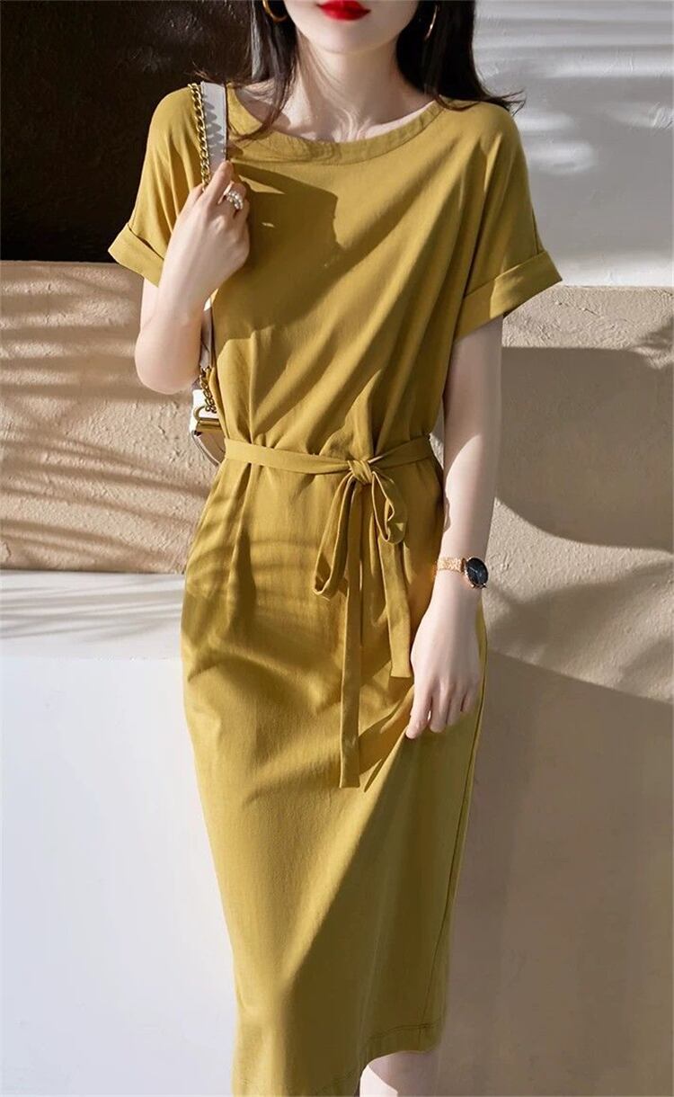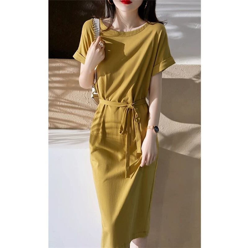 ドレスレディースサマー小さなメッシュレッドファッションルーズTシャツスカートロングドレス ワンピース ミモレ丈 ロング 半袖 ラウンドネック Aライン ウエストリボン 大人可愛い きれいめ シンプル カジュアル 大人 上品 おしゃれ レトロ 大人女子 こなれ感 ラフ 無地 春 夏 10代 20代 30代 40代 レディース 女性用 学生 通学 デート お出かけ 女子会 お泊まり 休日 リゾート 旅行 海 高原 着回し 普段使い 重ね着 S M L XL 2XL ブラック イエロー