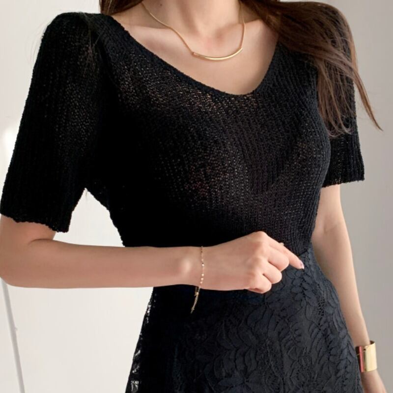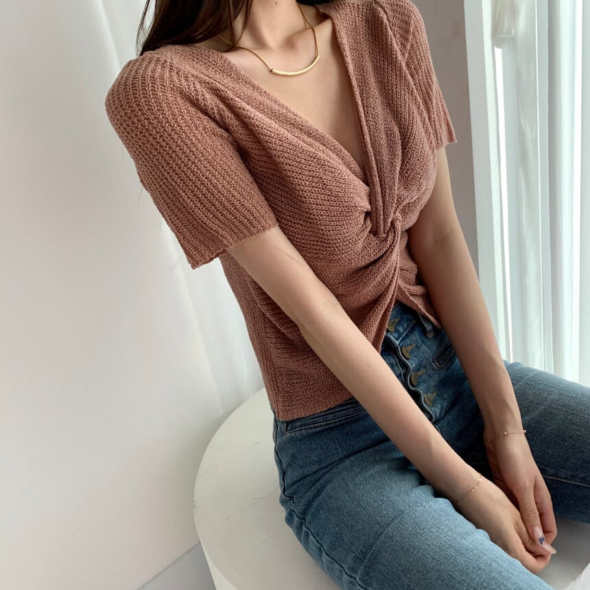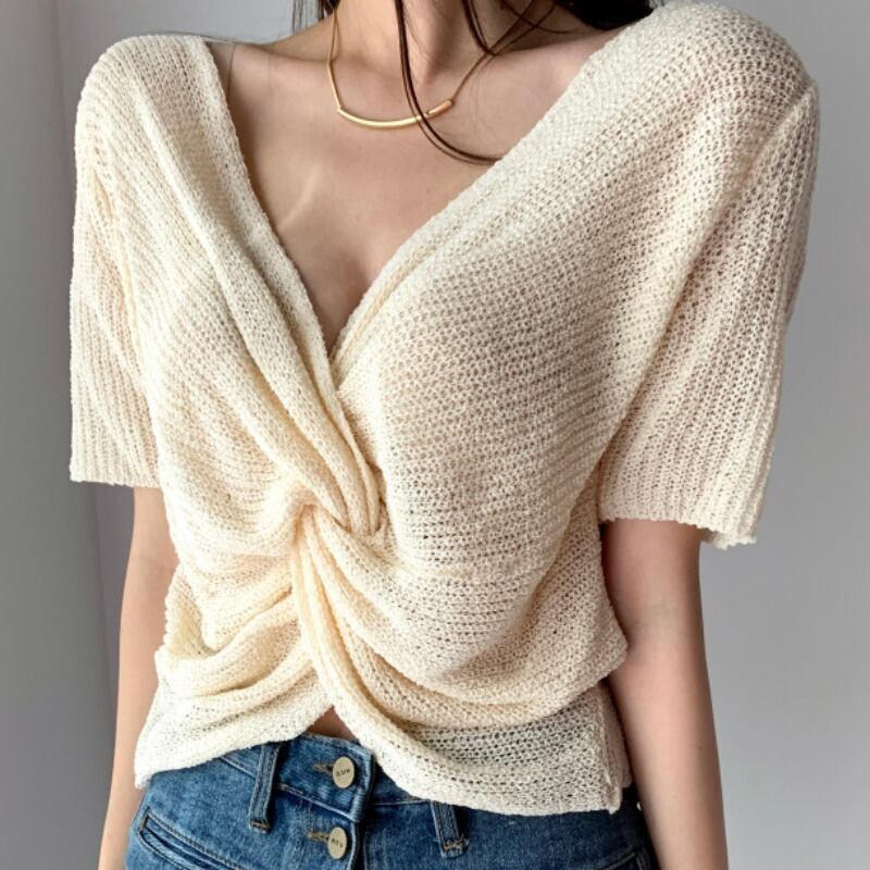 半袖ニット トップス ニットソー セーター ショート ショート丈 袖あり 半袖 Vネック 透け感 かわいい 大人可愛い きれいめ シンプル カジュアル 大人 上品 おしゃれ お洒落 大人可愛い 大人女子 こなれ感 キュート ガーリー 個性的 エレガント モダン 主役級 存在感 無地 春 夏 秋 10代 20代 30代 レディース 学生 通学 デート お出かけ 女子会 休日 海 プール 着回し 普段使い 重ね着 韓国系 オルチャン 色展開 黒 ブラック 緑 グリーン ピンク アプリコット