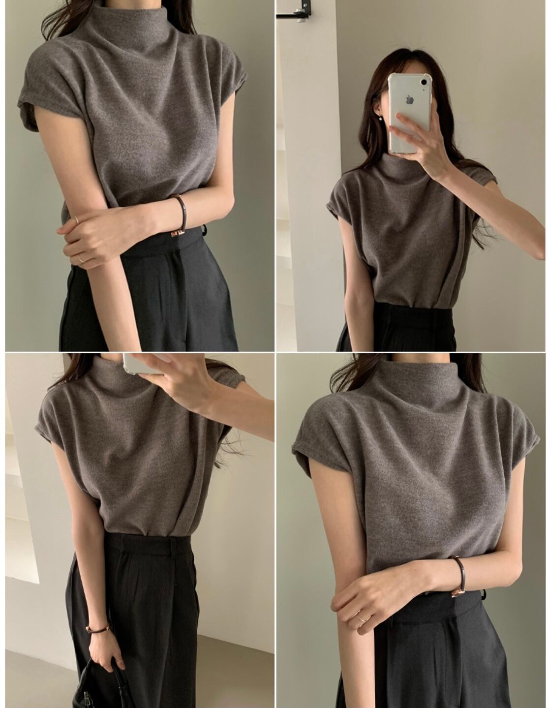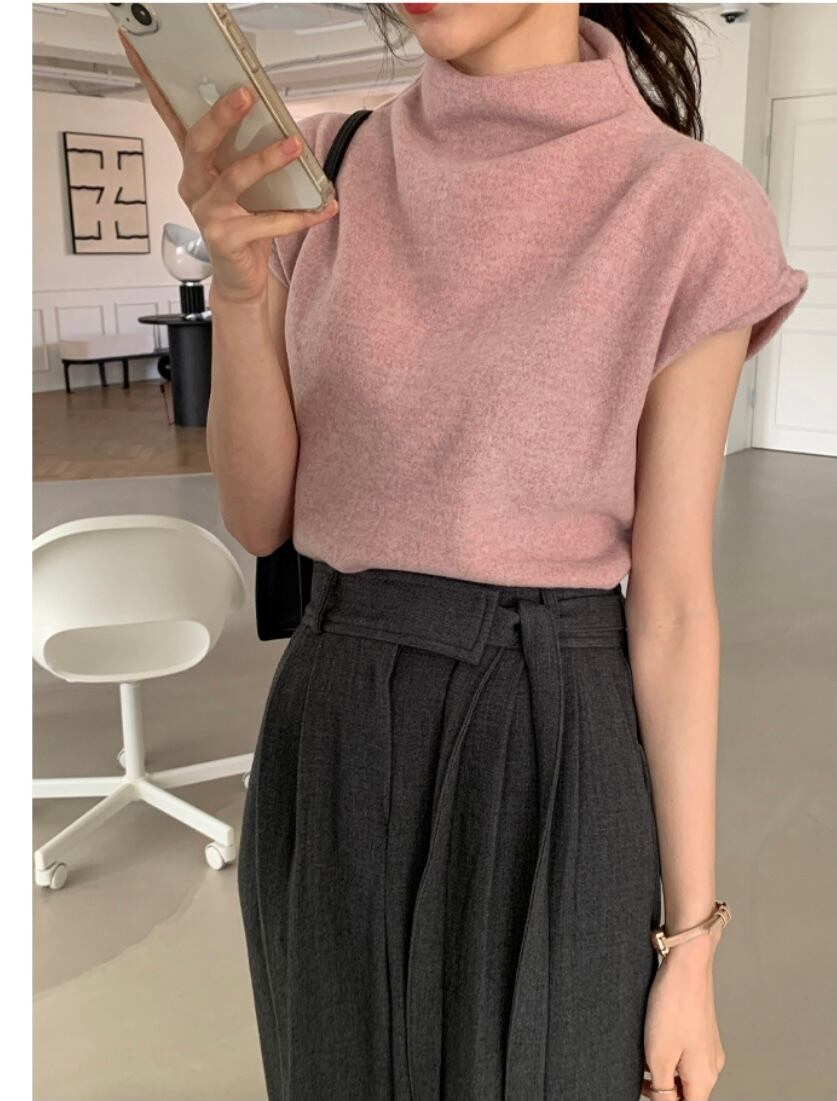 半袖ニット トップス ニットソー セーター 袖あり 半袖 フレンチスリーブ ハイネック 綿 かわいい 大人可愛い きれいめ シンプル カジュアル 大人 上品 おしゃれ お洒落 大人可愛い 大人女子 こなれ感 キュート ガーリー 個性的 エレガント モダン 主役級 存在感 無地 春 夏 秋 10代 20代 30代 レディース OL 通勤 学生 通学 デート お出かけ 女子会 休日 着回し 普段使い 重ね着 韓国系 オルチャン 色展開 灰色 グレー ピンク