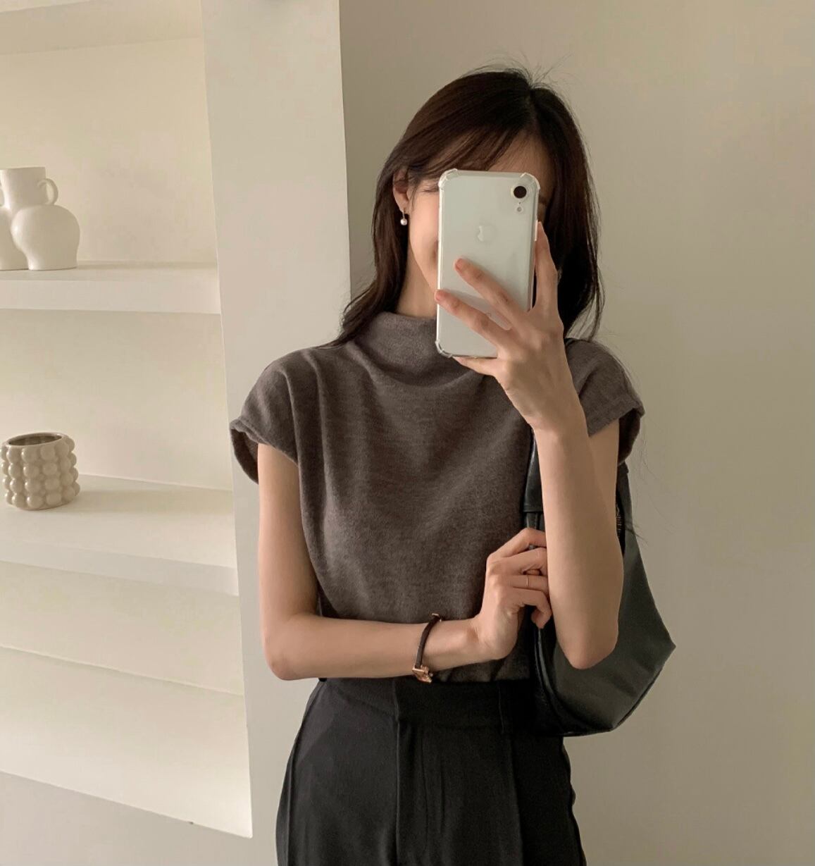 程良い厚みのニットトップスはスタイリングの幅が広がるマストバイアイテムです。