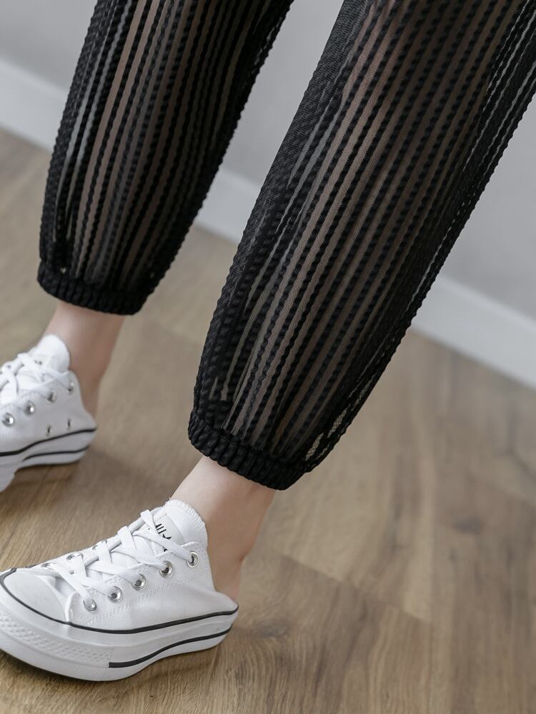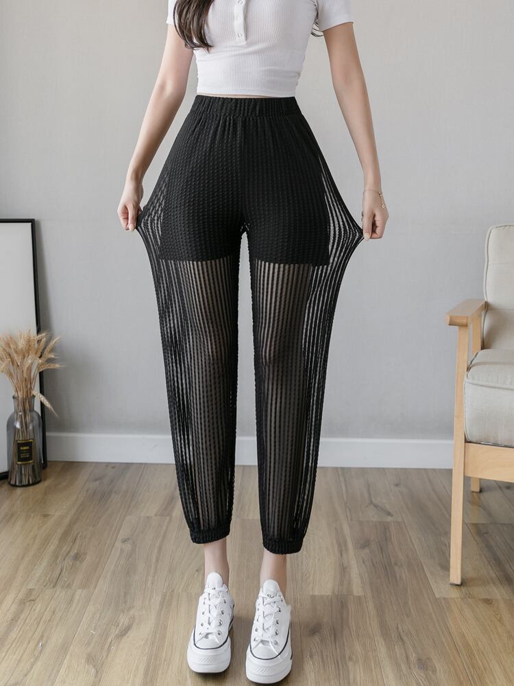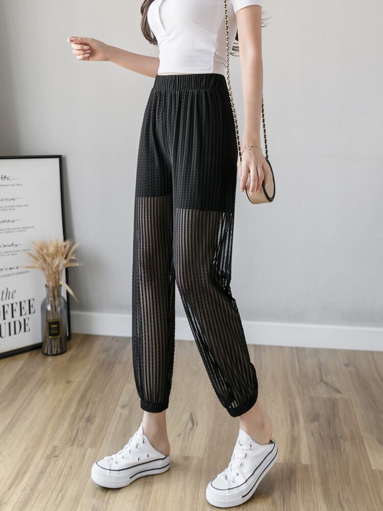 ボトムス パンツ ロング丈 ストレート ハイウエスト ウエストゴム 透け感 大人可愛い カジュアル おしゃれ かっこいい こなれ感 メンズライク ルーズ クール モード系 抜け感 ストリート系 ストライプ 春 夏 2022 10代 20代 レディース お出かけ 休日 イベント 旅行 プール 着回し 普段使い 韓国系 ファッション 楽ちん 体系カバー 美脚 脚長 新作 サイズ S M L XL 2XL 3XL 色展開 ブラック