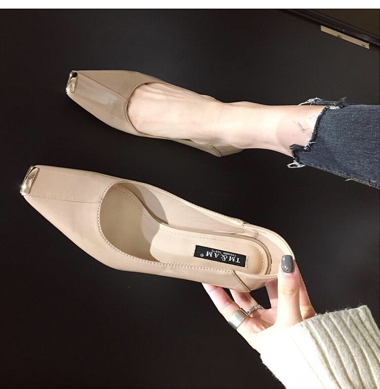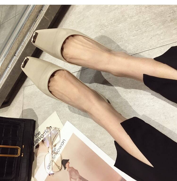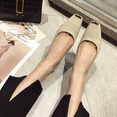 直線的なスクエアトゥでトレンド感のある足元を演出するパンプス。