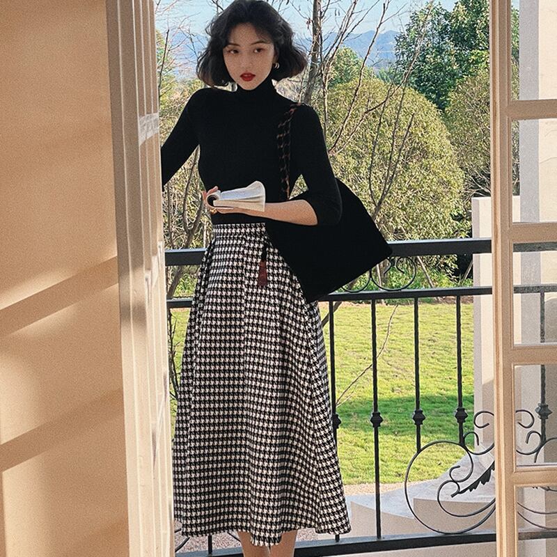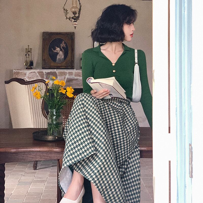 千鳥格子柄スカート スカート ボトムス フレアスカート ミモレ ミモレ丈 フレア Aライン ハイウエスト ポリエステル かわいい 大人可愛い きれいめ シンプル カジュアル 大人 上品 おしゃれ お洒落 大人可愛い 大人女子 こなれ感 キュート ガーリー 個性的 エレガント モダン 主役級 存在感 柄 千鳥格子 秋 冬 10代 20代 30代 レディース OL 通勤 学生 通学 デート お出かけ 女子会 休日 着回し 普段使い 韓国系 オルチャン サイズ S M L 色展開 黒 ブラック 緑 グリーン