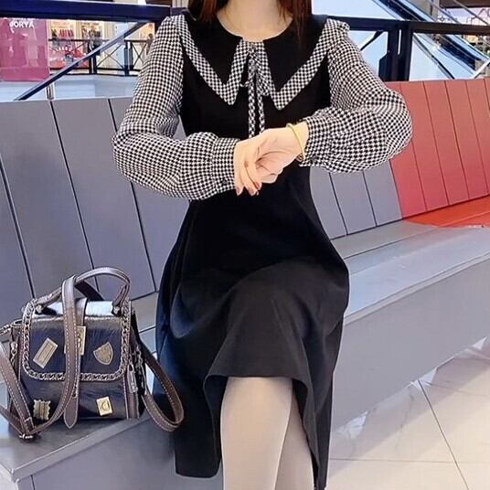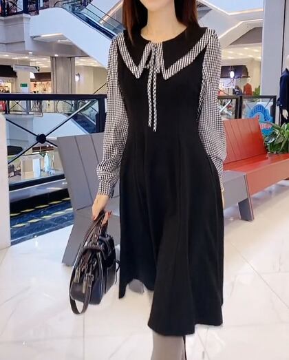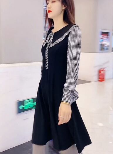ワンピース シャツワンピース 膝丈 膝下 袖あり 長袖 襟付き ビックカラー セミフレア Aライン リボン ドッキング ハイウエスト ツーピース風 かわいい 大人可愛い きれいめ 上品 おしゃれ 大人女子 キュート ガーリー 主役級 チェック柄 春 秋 2022 10代 20代 30代 レディース オフィス 通勤 お出かけ 休日 イベント 旅行 レストラン 着回し 普段使い 楽ちん モテ 美脚 新作 インスタ映え サイズ M L XL 2XL 3XL 4XL 大きめ 色展開 ブラック