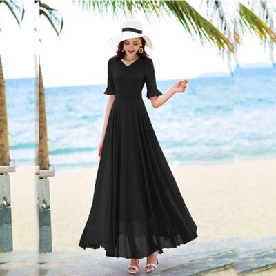 ワンピース ワンピドレス ロング丈 袖あり 5分袖 五分袖 Vネック Aライン シフォン ウエストマーク ハイウエスト 透け感 かわいい シンプル 上品 レトロ 大人可愛い こなれ感 主役級 存在感 無地 春 夏 20代 30代 40代 レディース 女性用 ママ デート お出かけ 女子会 休日 リゾート 旅行 海 普段使い 楽ちん モテ M L XL 2XL 白 ホワイト 黒 ブラック 赤 レッド 青 ブルー 緑 グリーン ローズレッド バーガンディ