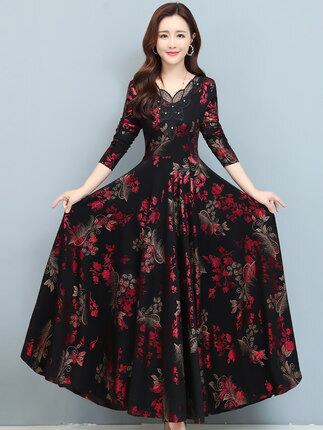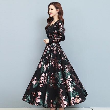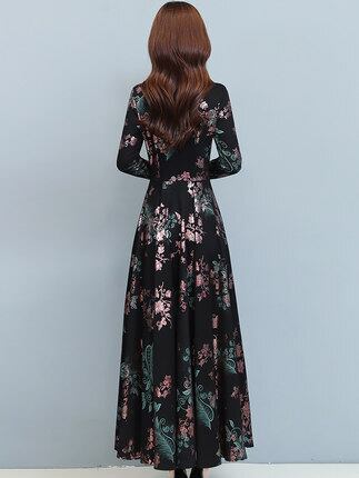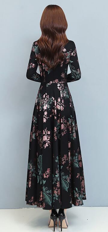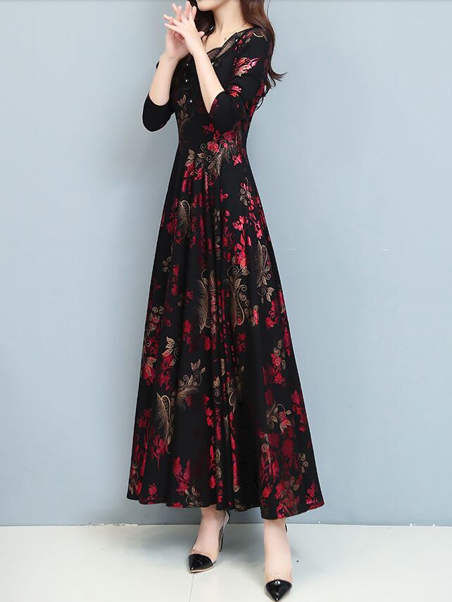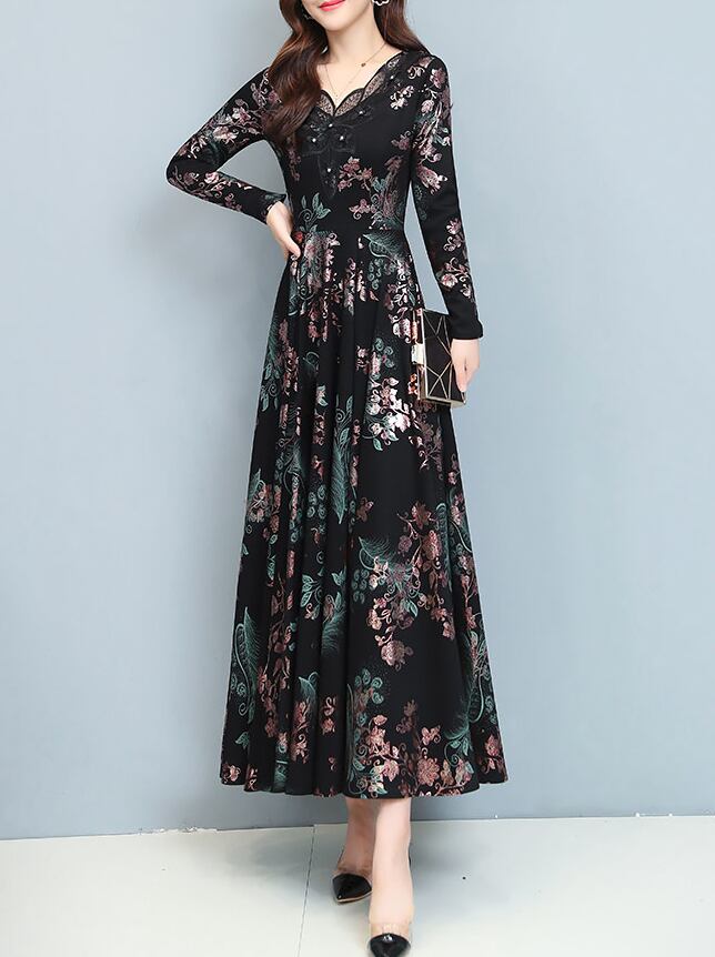 花柄ロングワンピース ワンピース フレアワンピース ワンピドレス ロング ロング丈 袖あり 長袖 Vネック フレア レース ハイウエスト かわいい 大人可愛い きれいめ シンプル カジュアル 大人 上品 おしゃれ お洒落 レトロ 大人可愛い 大人女子 こなれ感 ラフ 個性的 モダン 主役級 存在感 柄 花柄 春 秋 10代 20代 30代 レディース デート お出かけ 女子会 休日 パーティー イベント 着回し 普段使い 重ね着 サイズ M L XL 2XL 3XL 色展開 黒 ブラック 緑 グリーン