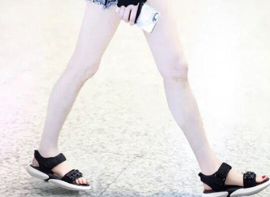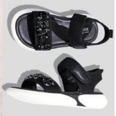 大きなビジューがかわいい厚底サンダルです。