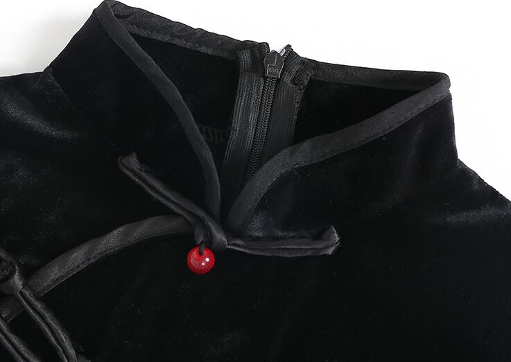 チャイナドレス風のネックラインがユニークなデザイン。