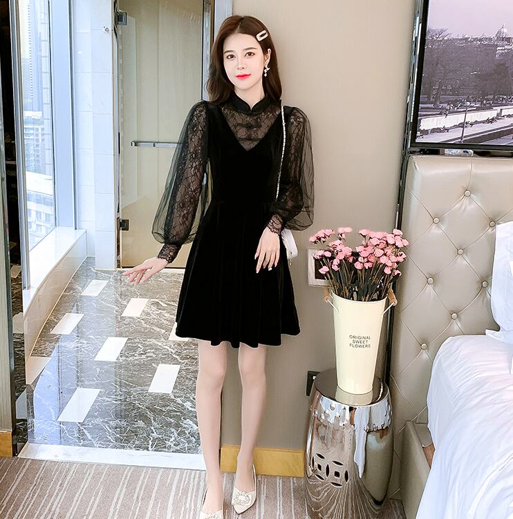 レース切替ワンピース ワンピース フレアワンピース ワンピドレス ミニ ミニ丈 袖あり 長袖 パフスリーブ ハイネック フレア 切り替えデザイン レース ウエストマーク 切り替えデザイン ハイウエスト 透け感 シースルー かわいい 大人可愛い きれいめ シンプル カジュアル 大人 上品 おしゃれ お洒落 レトロ 大人可愛い 大人女子 こなれ感 ラフ 個性的 モダン 主役級 存在感 無地 春 秋 10代 20代 30代 レディース 学生 通学 デート お出かけ 女子会 休日 パーティー イベント 着回し
