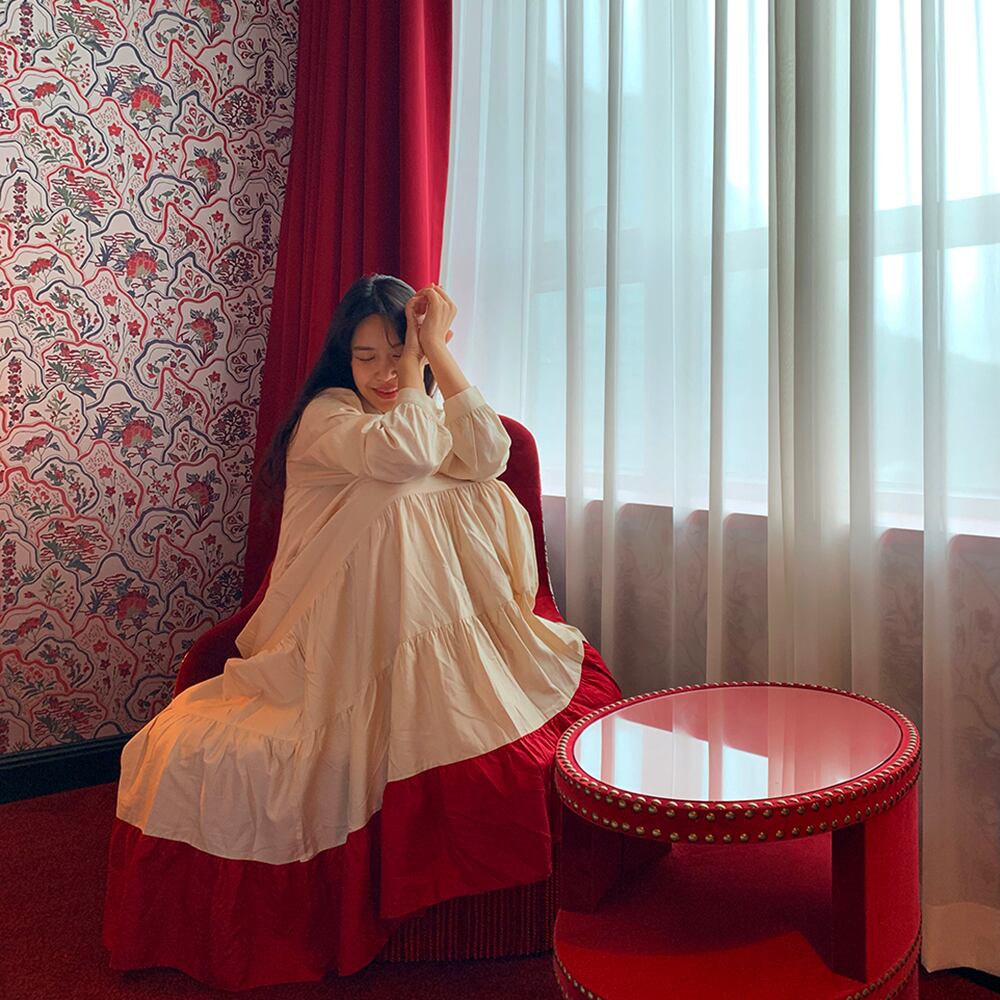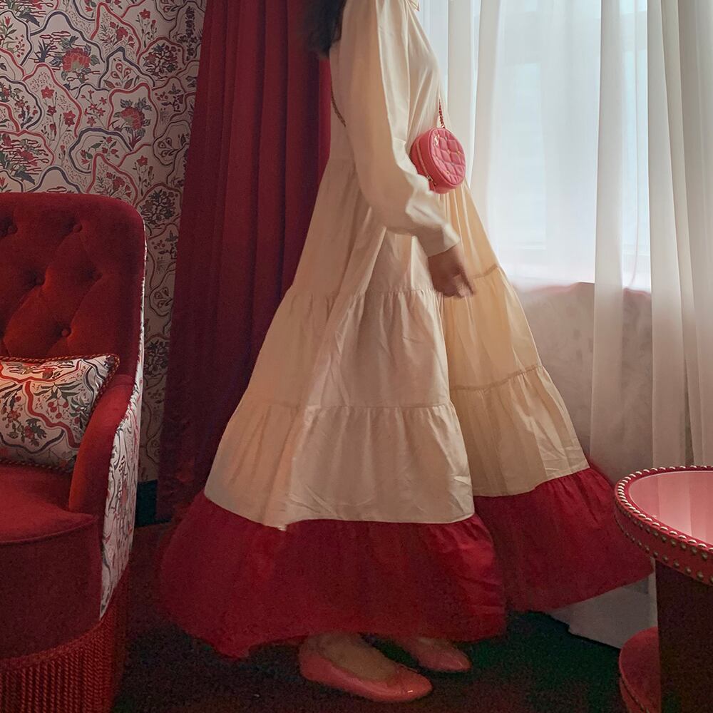 Aラインにふんわり広がるシルエットが可愛いティアードワンピース。
