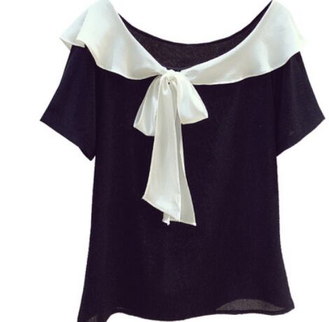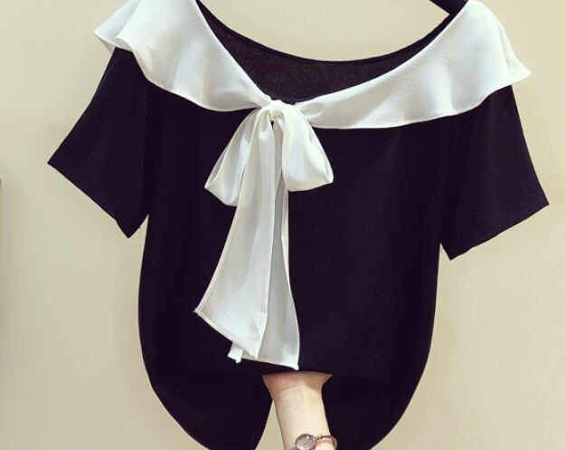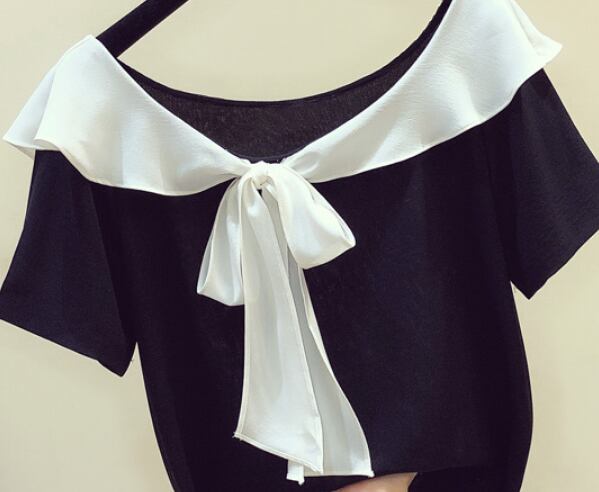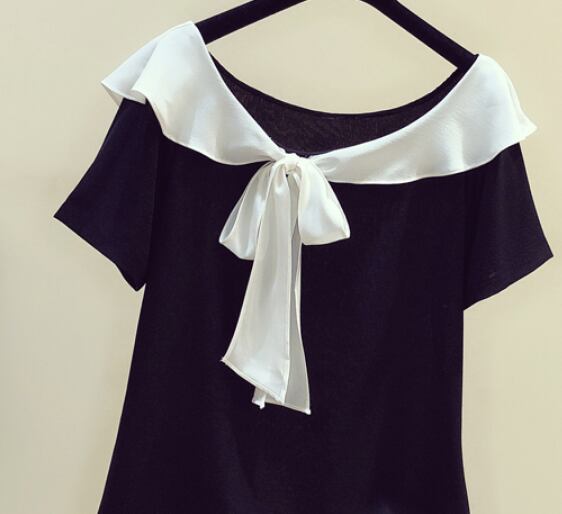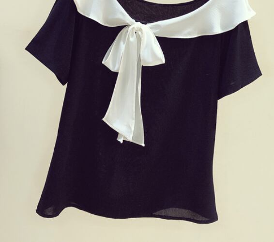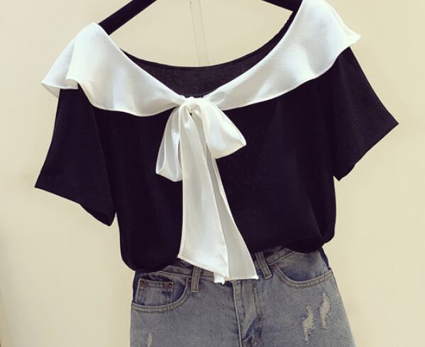 キュートで爽やかなリボン付き半袖ブラウスです。