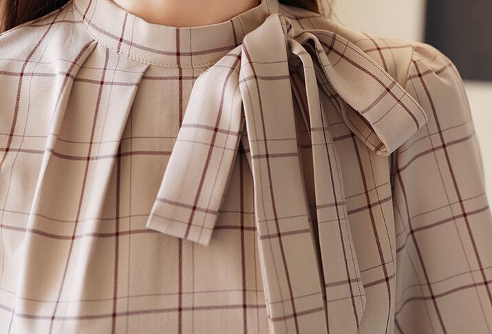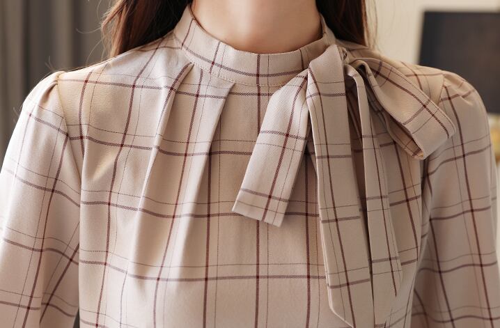 トップス ブラウス 袖あり 長袖 襟付き リボン襟 スリム ストレート リボン 大人可愛い きれいめ シンプル 上品 おしゃれ 大人女子 ラブリー キュート エレガント フォーマル とろみ感 チェック柄 春 秋 2022 20代 30代 40代 レディース OL デート お出かけ 休日 ホテル レストラン 着回し 普段使い 韓国系 ファッション モテ インスタ映え サイズ S M L XL 2XL 色展開 ベージュ