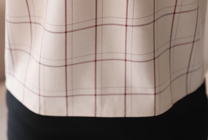 チェック柄とリボンで、上品な着こなしに。オフィスコーデに取り入れたり、OFFの日にも綺麗めなスタイリングに取り入れたりと、着こなし方が幅広いですよ。フレア、スリムなスカートと相性ぴったりです。