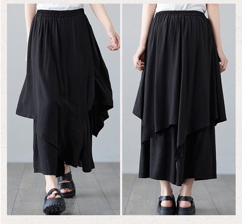 ドレス パンツ 女性 夏 7 分パンツ ゆったりワイドレッグナイトスカート パンツ 7分丈 ワイド ドッキング ウエストゴム 薄手 大人可愛い きれいめ シンプル カジュアル 大人 おしゃれ レトロ アジアン 大人女子 こなれ感 ラフ 無地 春 夏 秋 10代 20代 30代 40代 レディース 女性用 OL 通勤 学生 通学 デート お出かけ 女子会 お泊まり 休日 旅行 高原 ガーデン 着回し 普段使い 楽ちん M L XL ブラック
