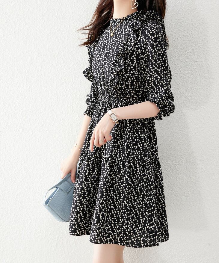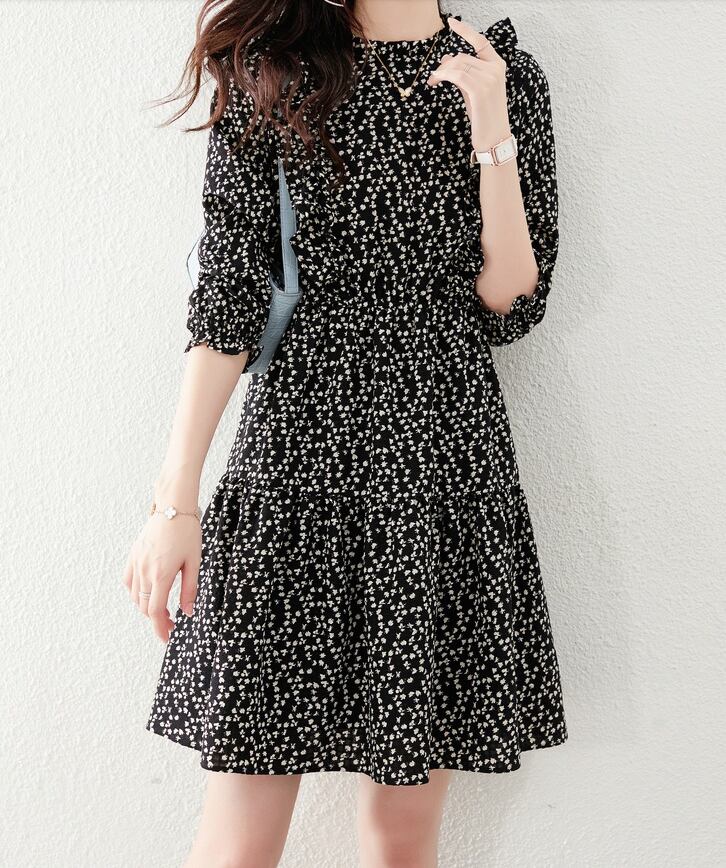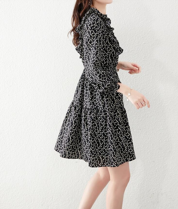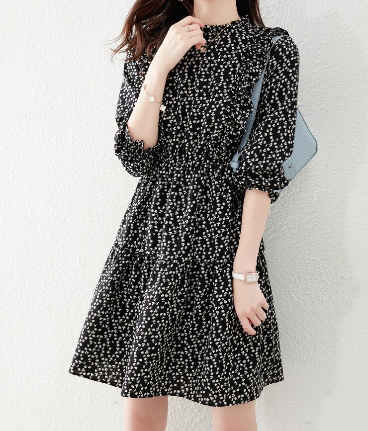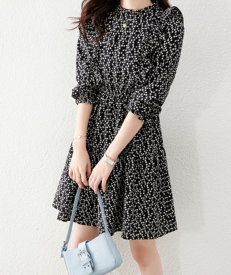 花柄ワンピース ワンピース フレアワンピース ワンピドレス ミニ ミニ丈 袖あり 長袖 ハイネック フレア フリル ハイウエスト ポリエステル かわいい 大人可愛い きれいめ シンプル カジュアル 大人 上品 おしゃれ お洒落 レトロ 大人可愛い 大人女子 こなれ感 ラブリー キュート ガーリー 個性的 モダン 主役級 存在感 柄 花柄 小花柄 春 秋 10代 20代 30代 レディース 学生 通学 デート お出かけ 女子会 休日 着回し 普段使い 重ね着 韓国系 オルチャン サイズ S M L XL