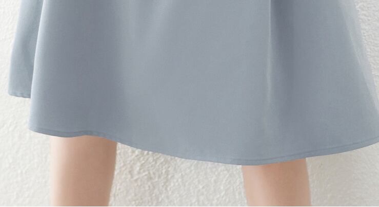 鮮やかなライトブルーのシャツワンピース。