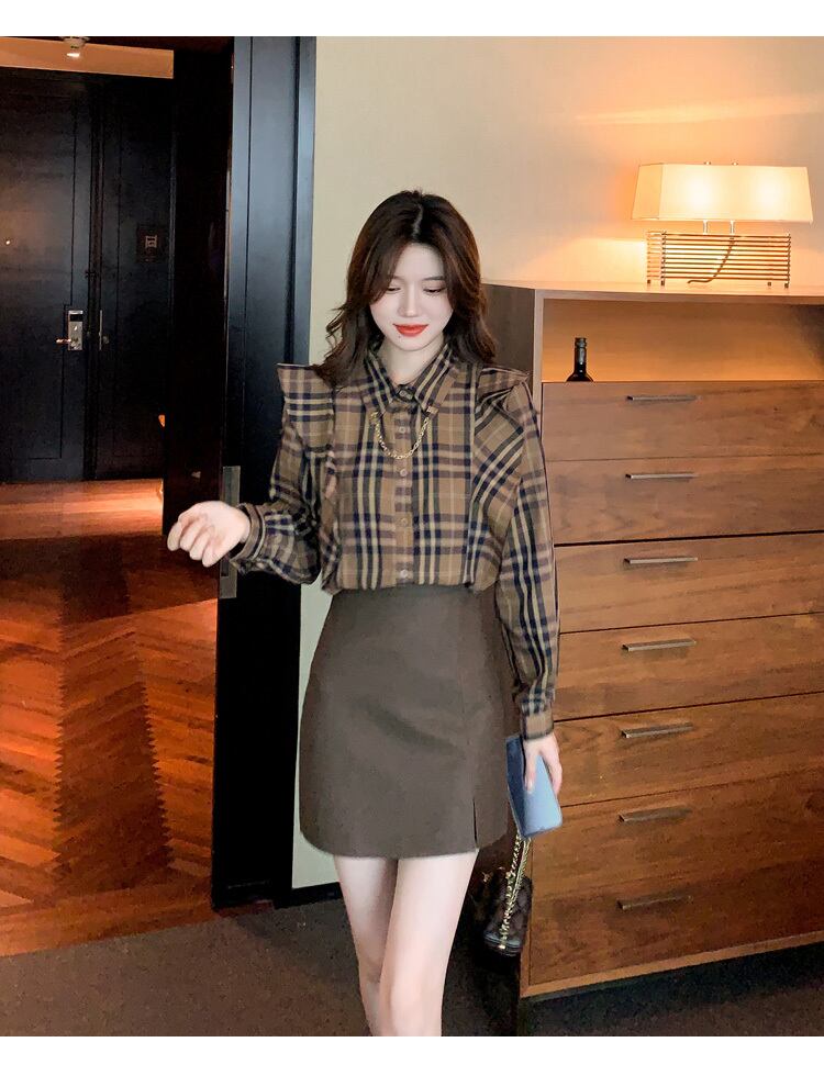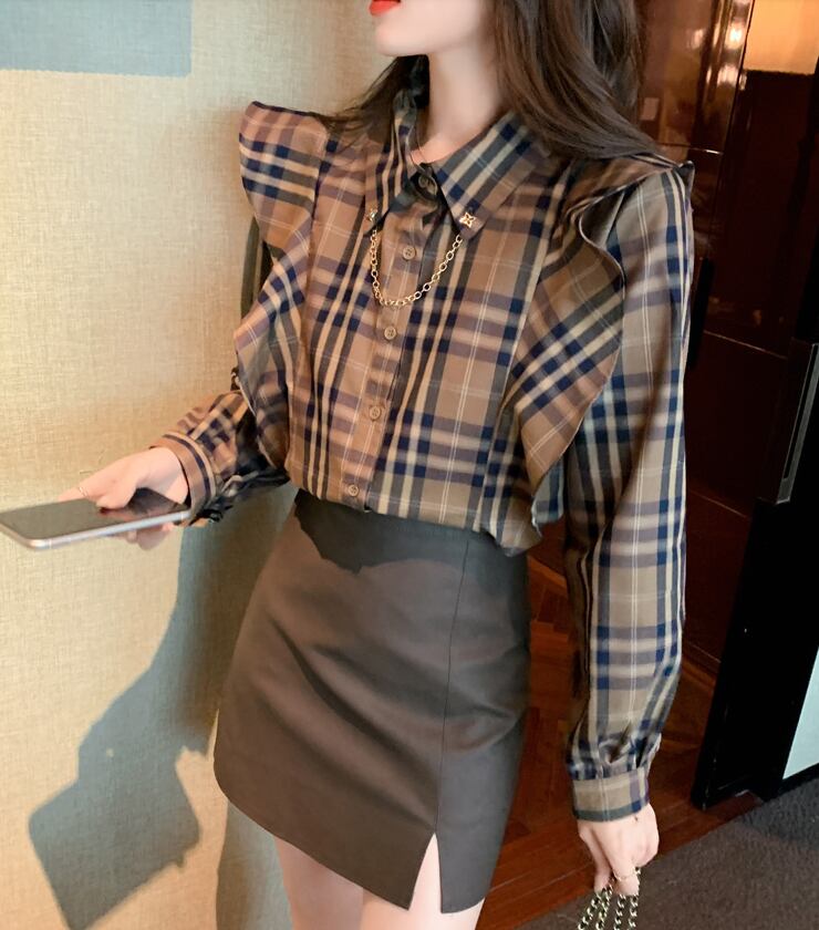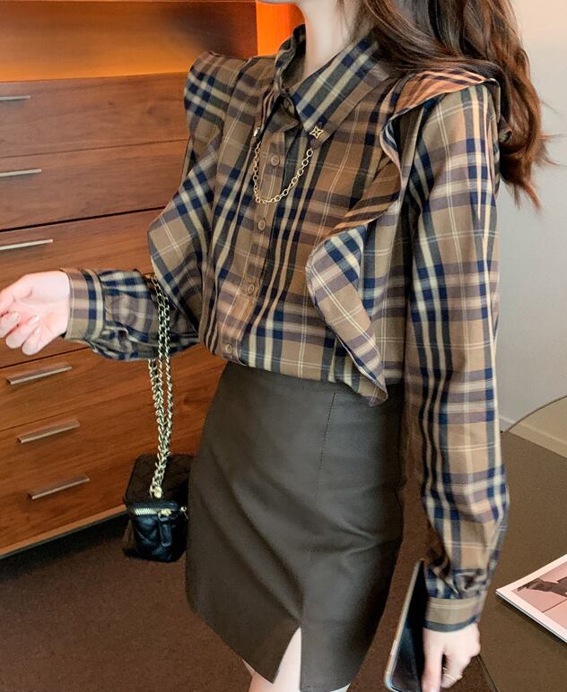 チェック柄シャツ トップス シャツ ブラウス 袖あり 長袖 襟付き フリル 前開き 綿 かわいい 大人可愛い きれいめ シンプル カジュアル 大人 上品 おしゃれ お洒落 レトロ 大人可愛い 大人女子 こなれ感 キュート ガーリー 個性的 モダン 主役級 存在感 柄 チェック柄 春 秋 10代 20代 30代 レディース OL 通勤 学生 通学 デート お出かけ 女子会 休日 着回し 普段使い 重ね着 韓国系 オルチャン サイズ S M L XL 色展開 茶色 ブラウン