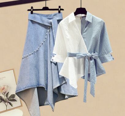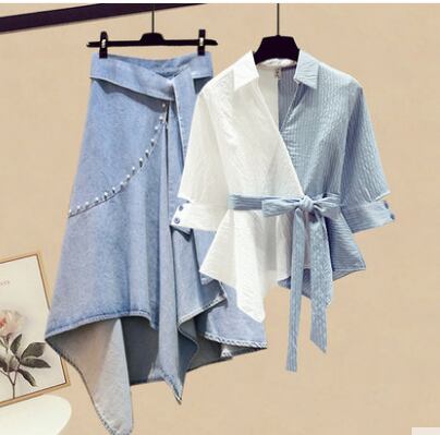 デザインブラウスとスカートのセットアップです。