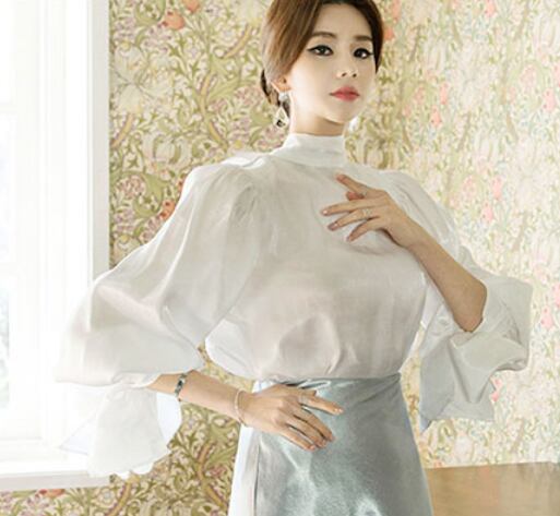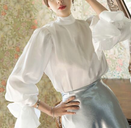 華やかなフリル&リボンが個性的な長袖ブラウスです。