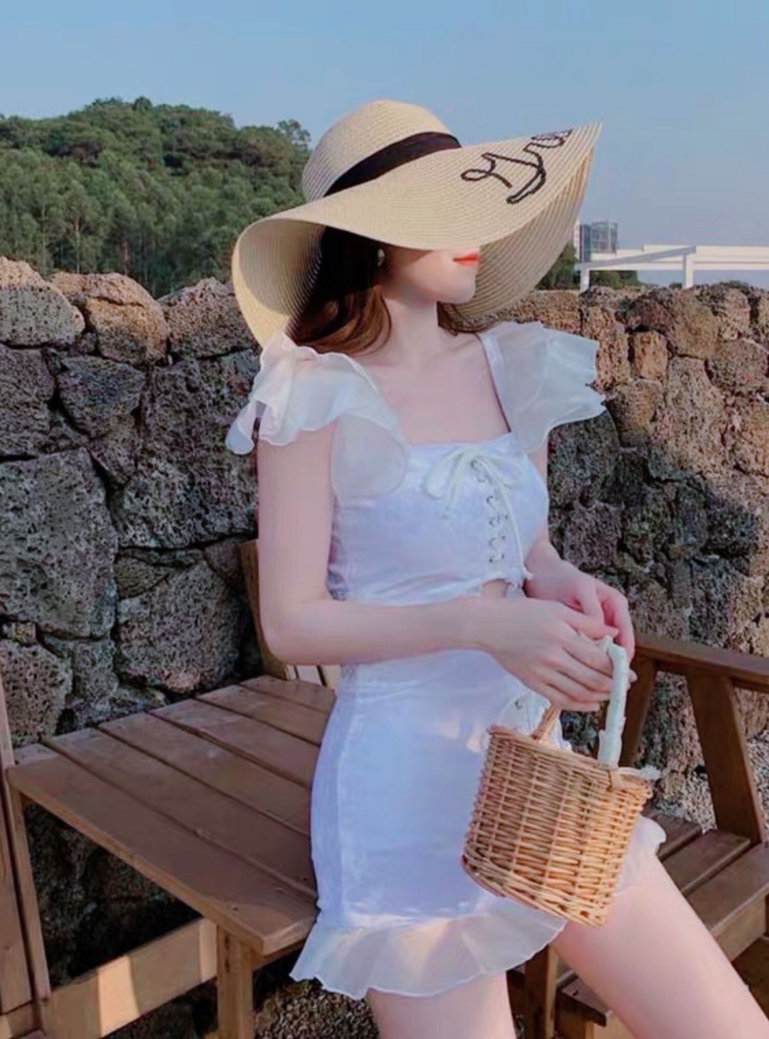 華やかさがあって、しっかりと存在感をアピール出来ちゃいます。インスタ映えするような、大人可愛いフリルとスタイルアップ効果も◎フロント部分のレースアップが大人っぽく、女性らしい魅力的なデザインです。