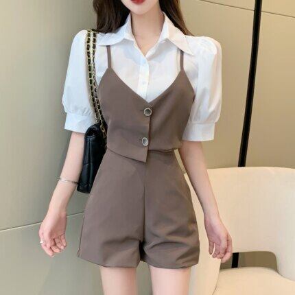 セットアップ シャツ ショートパンツ ショート ショート丈 袖あり 半袖 パフスリーブ 襟付き ドッキング ドッキング ハイウエスト 上下セット 2点セット かわいい 大人可愛い きれいめ シンプル カジュアル 大人 上品 おしゃれ お洒落 レトロ 大人可愛い 大人女子 こなれ感 キュート ガーリー 個性的 モダン 主役級 存在感 無地 春 夏 10代 20代 30代 レディース OL 通勤 学生 通学 デート お出かけ 女子会 休日 着回し 普段使い 重ね着 韓国系 オルチャン サイズ S M L