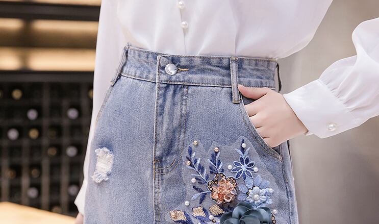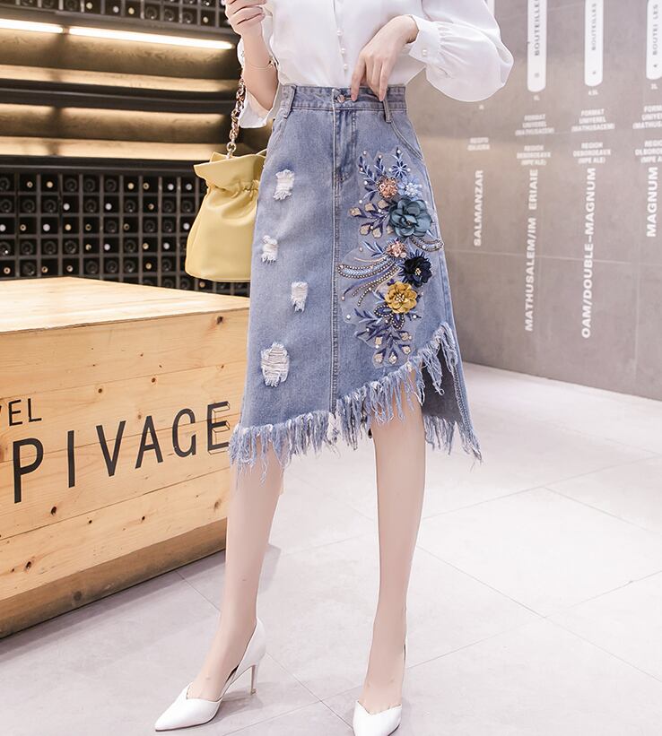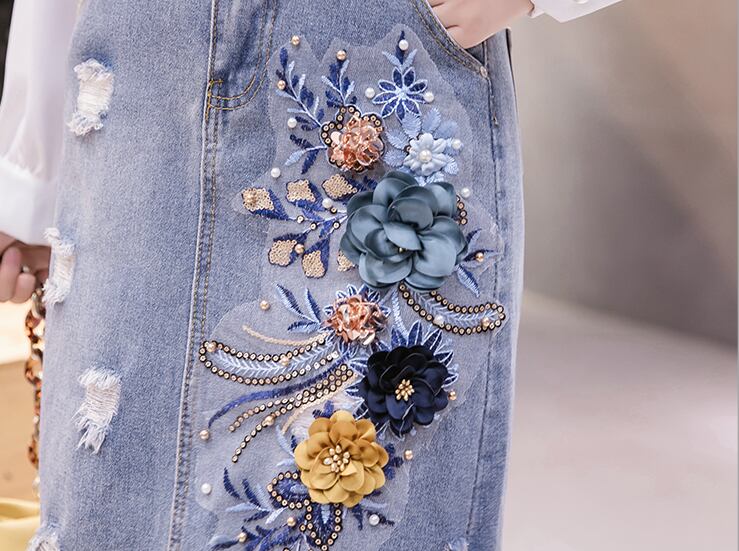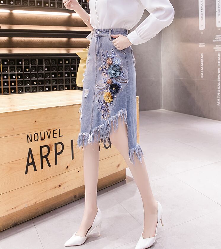 刺繡デニムスカート スカート ボトムス デニムスカート 膝丈 ひざ丈 Aライン 刺繍 ハイウエスト 綿 デニム かわいい 大人可愛い きれいめ シンプル カジュアル 大人 上品 おしゃれ お洒落 レトロ エキゾチック 大人女子 こなれ感 キュート ガーリー 個性的 モダン 主役級 存在感 無地 春 夏 秋 10代 20代 30代 レディース 学生 通学 デート お出かけ 女子会 休日 着回し 普段使い 重ね着 サイズ S M L XL 2XL 3XL 色展開 青 ブルー