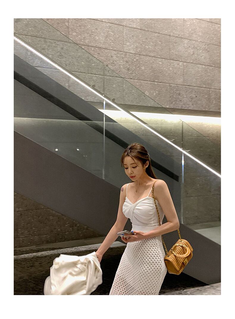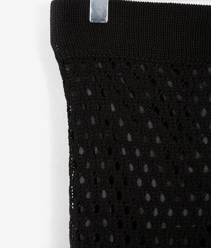 脚のラインを綺麗に魅せてくれる透かし編みロングスカート。