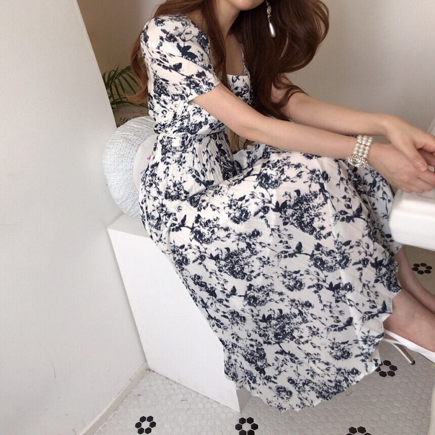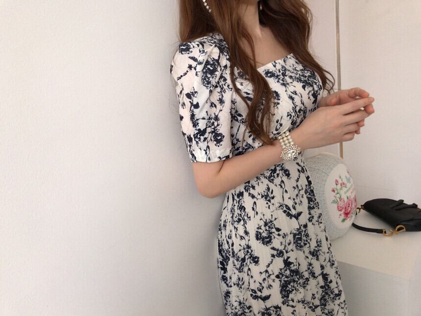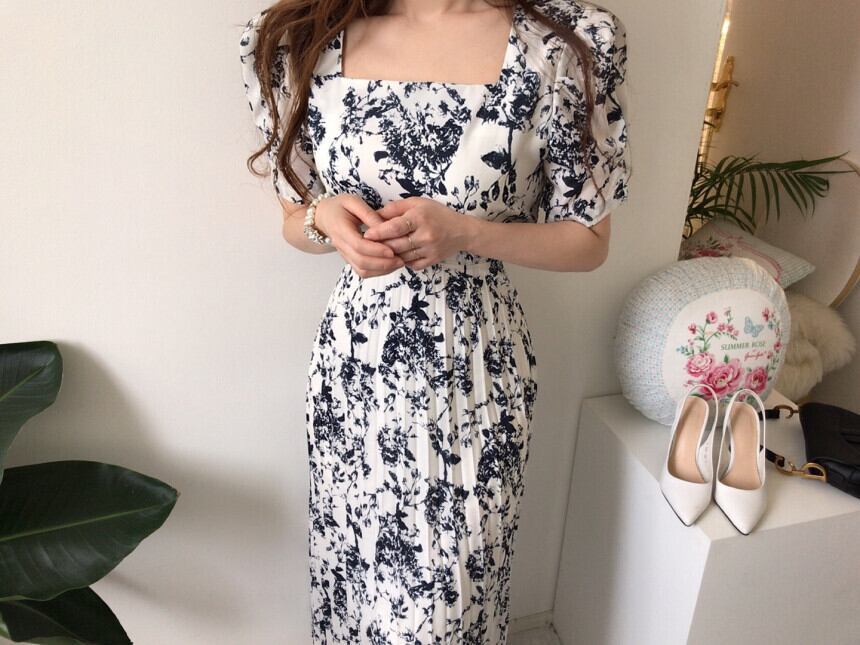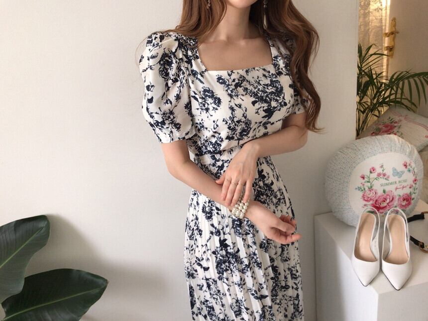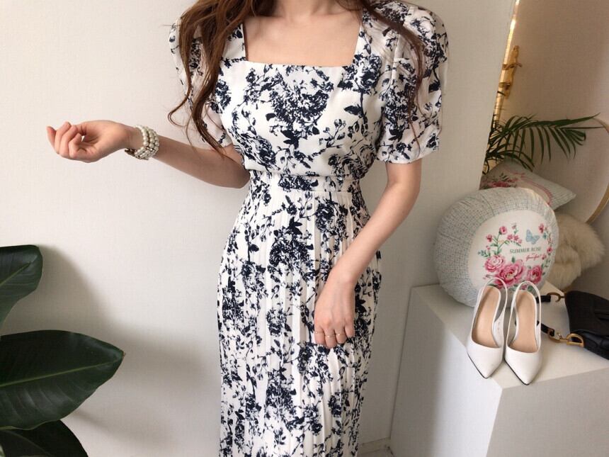 花柄ワンピース ワンピース フレアワンピース ワンピドレス ロング ロング丈 袖あり 半袖 パフスリーブ スクエアネック フレア プリーツ ウエストマーク ハイウエスト かわいい 大人可愛い きれいめ シンプル カジュアル 大人 上品 おしゃれ お洒落 レトロ エキゾチック 大人女子 こなれ感 キュート ガーリー 個性的 モダン 主役級 存在感 柄 花柄 小花柄 春 夏 10代 20代 30代 レディース OL 通勤 学生 通学 デート お出かけ 女子会 休日 着回し 普段使い 重ね着 韓国系 オルチャン