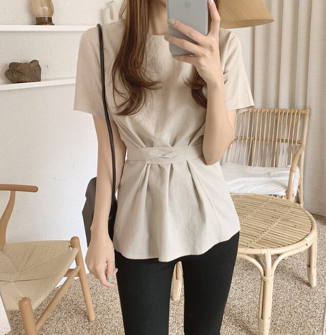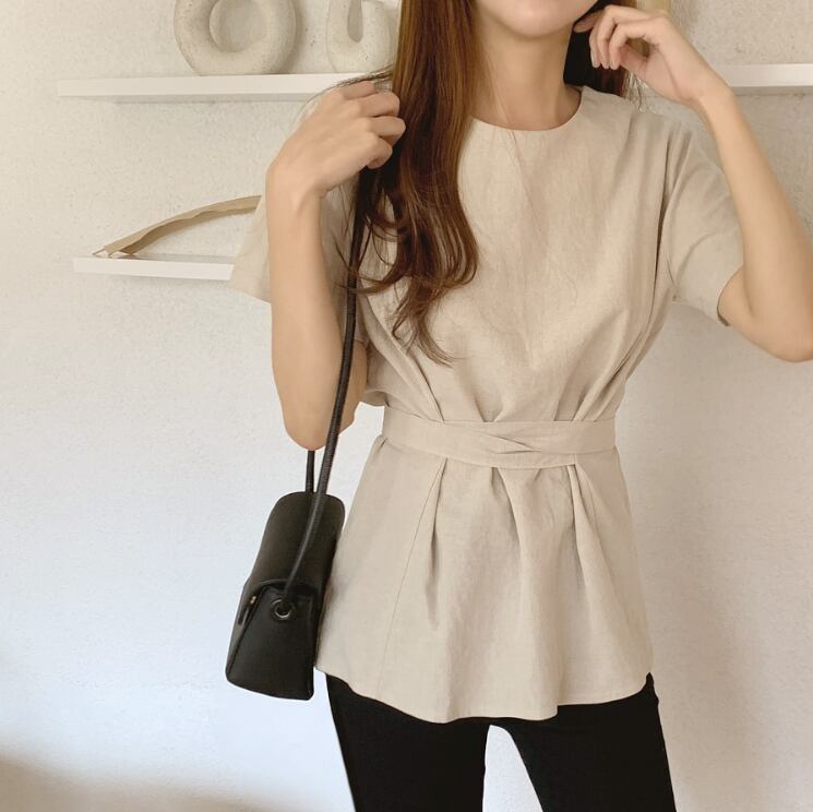 半袖ブラウス トップス ブラウス 袖あり 半袖 ラウンドネック ペプラム ウエストマーク ハイウエスト 綿 麻 リネン かわいい 大人可愛い きれいめ シンプル カジュアル 大人 上品 おしゃれ お洒落 レトロ エキゾチック 大人女子 こなれ感 キュート ガーリー 個性的 モダン 主役級 存在感 無地 春 夏 10代 20代 30代 レディース OL 通勤 学生 通学 デート お出かけ 女子会 休日 着回し 普段使い 重ね着 韓国系 オルチャン サイズ S M L XL 色展開 アプリコット