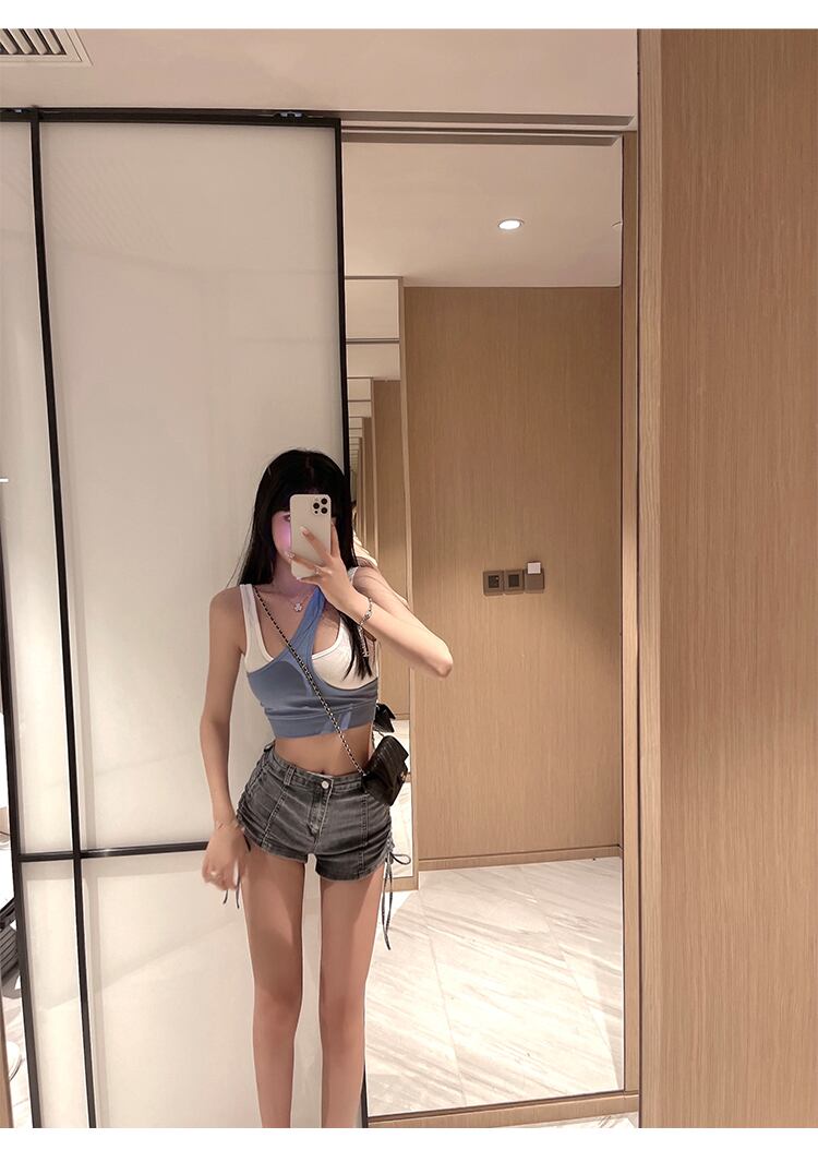 ハイウエスト・デニム・ショートパンツ レディース・サマー・ストラップ・メッシュ・ドローストリング・ホットパンツ パンツ ズボン ショートパンツ ショート ストレート ハイウエスト 大人可愛い きれいめ シンプル カジュアル お洒落 大人女子 こなれ感 ラフ 無地 春 夏 秋 10代 20代 レディース 女性用 OL 通勤 学生 通学 デート お出かけ 女子会 お泊まり 休日 リゾート 旅行 海 プール 高原 ガーデン 着回し 普段使い L ブラック
