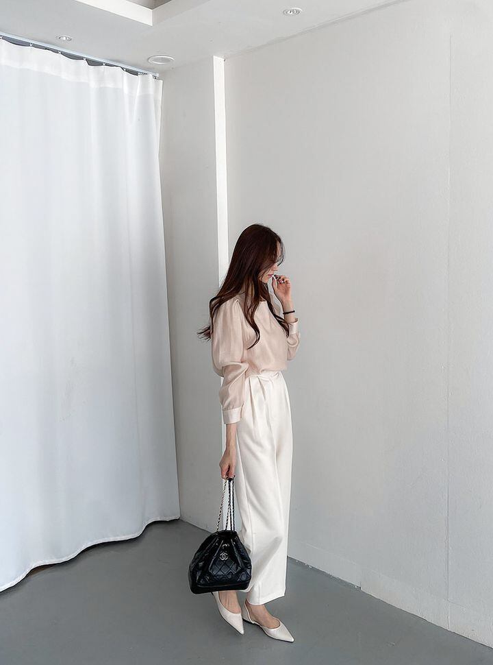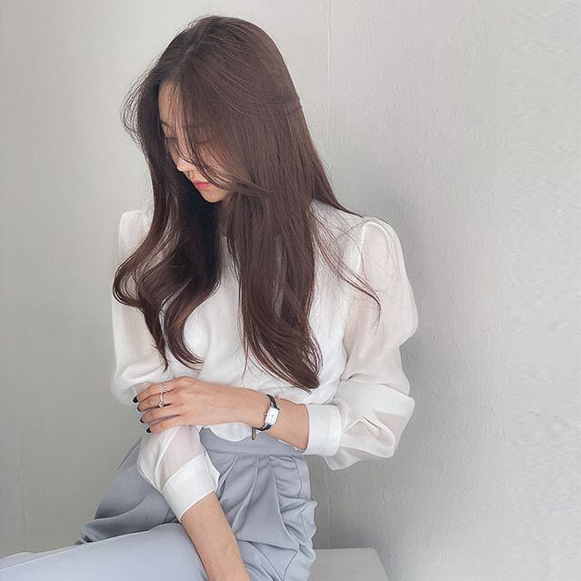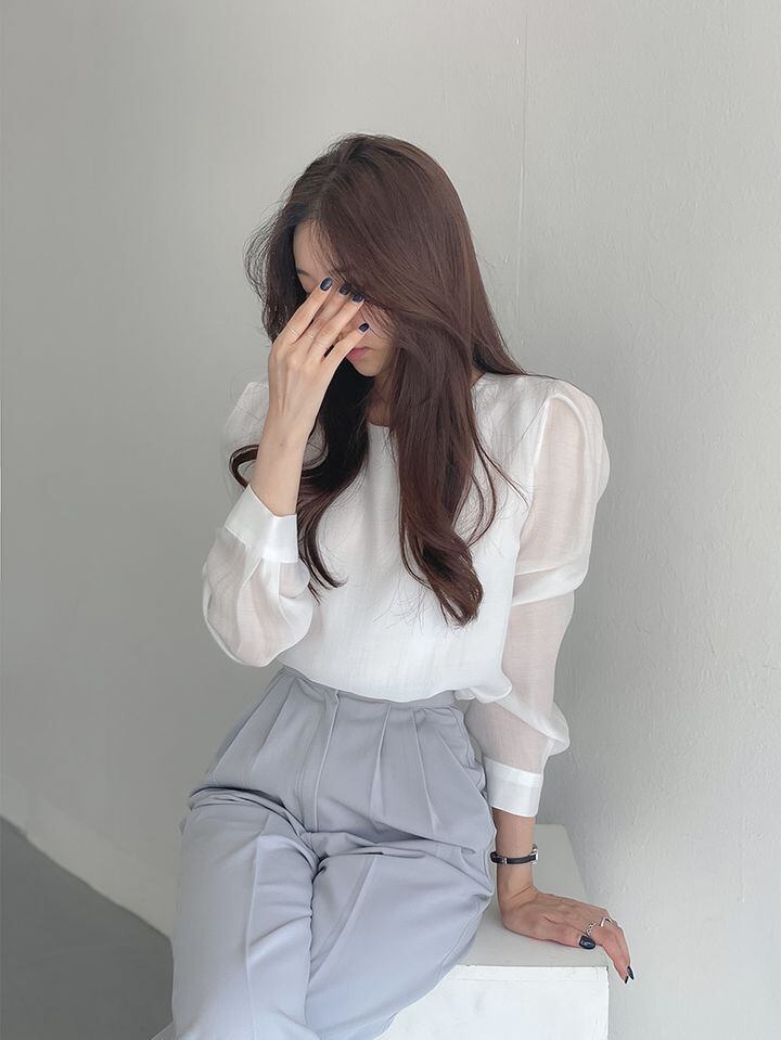 長袖ブラウス トップス ブラウス 袖あり 長袖 パフスリーブ ラウンドネック 透け感 かわいい 大人可愛い きれいめ シンプル カジュアル 大人 上品 おしゃれ お洒落 レトロ エキゾチック 大人女子 こなれ感 キュート ガーリー 個性的 セクシー モダン 主役級 存在感 無地 春 秋 入学式 入園式 卒業式 卒園式 10代 20代 30代 レディース OL 通勤 学生 通学 デート お出かけ 女子会 休日 着回し 普段使い 重ね着 色展開 白 ホワイト 青 ブルー アプリコット