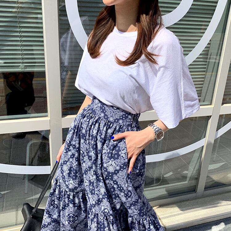 ボリューミーなシルエットが可愛い総柄ロングスカート。