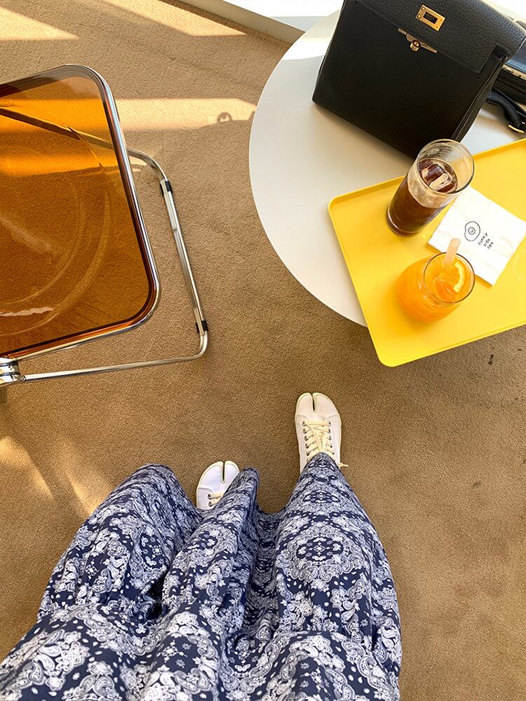 ペイズリー柄にネイビーのカラーがレトロな雰囲気。
