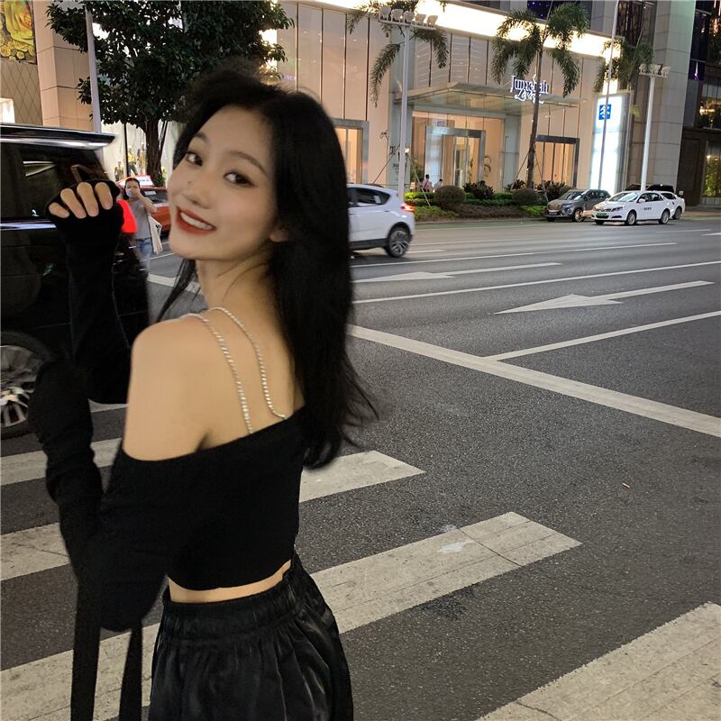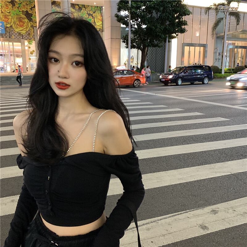 トップス カーディガン キャミソール ショート丈 袖あり 長袖 オフショル スリム 伸縮性 2点セット ツーピース 大人可愛い おしゃれ かっこいい 大人女子 クール モード系 セクシー エレガント 存在感 無地 春 秋 10代 20代 30代 レディース デート お出かけ 休日 パーティー イベント 旅行 着回し 普段使い 重ね着 オルチャン モテ インスタ映え サイズ S M L XL 色展開 ブラック