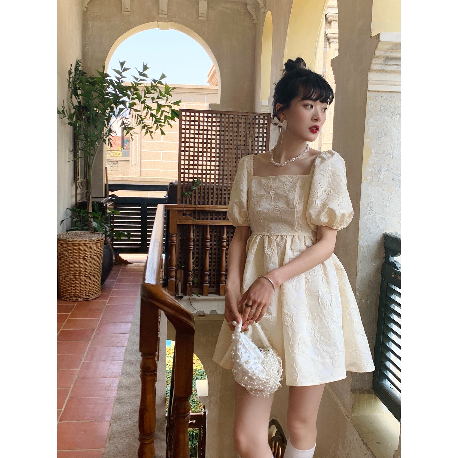 フレンチカラー ウエストドレス夏 バブルスリーブストラップ バックエアスカート ワンピース フレアワンピース ミニ丈 半袖 パフスリーブ スクエアネック Aライン ウエストリボン バックリボン ハイウエスト 大人可愛い シンプル カジュアル 大人 おしゃれ 大人女子 ラブリー キュート 主役級 無地 春 夏 謝恩会 結婚式 二次会 披露宴 10代 20代 レディース 女性用 OL 学生 デート お出かけ 女子会 お泊まり 休日 旅行 ホテル S M L ホワイト