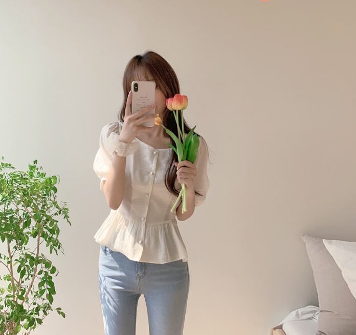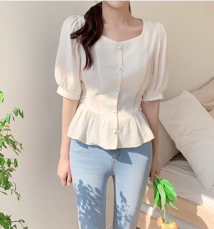 スクエアネックブラウス トップス ブラウス 袖あり 長袖 スクエアネック ペプラム 前開き かわいい 大人可愛い きれいめ シンプル カジュアル 大人 上品 おしゃれ お洒落 レトロ 大人女子 こなれ感 キュート ガーリー 個性的 モダン 主役級 存在感 無地 春 秋 10代 20代 30代 レディース OL 通勤 学生 通学 デート お出かけ 女子会 休日 着回し 普段使い 重ね着 韓国系 オルチャン サイズ S M L XL 色展開 白 ホワイト