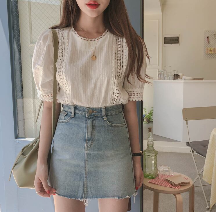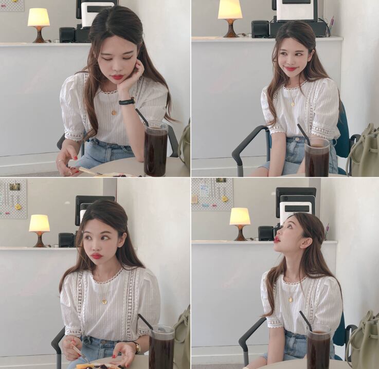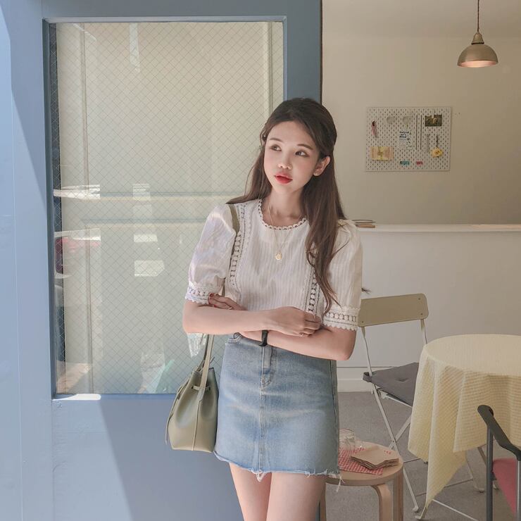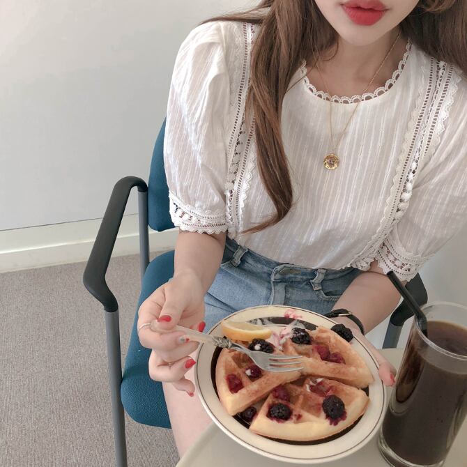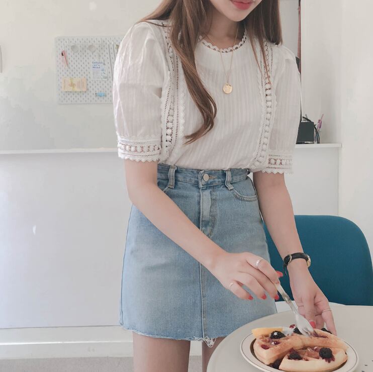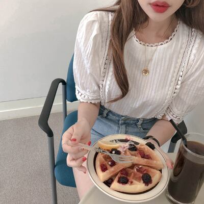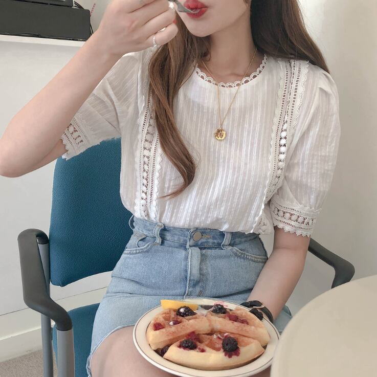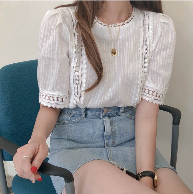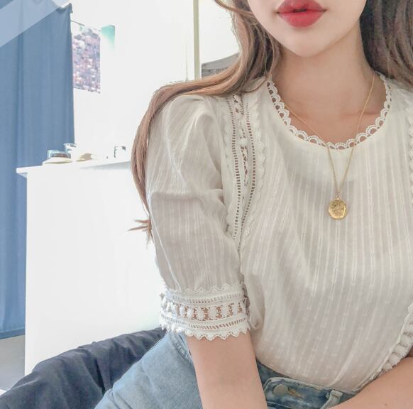 レースブラウス トップス ブラウス 袖あり 半袖 パフスリーブ ラウンドネック レース かわいい 大人可愛い きれいめ シンプル カジュアル 大人 上品 おしゃれ お洒落 レトロ 大人女子 こなれ感 キュート ガーリー 個性的 モダン 主役級 存在感 無地 春 夏 10代 20代 30代 レディース OL 通勤 学生 通学 デート お出かけ 女子会 休日 着回し 普段使い 重ね着 韓国系 オルチャン サイズ S M L XL 色展開 白 ホワイト