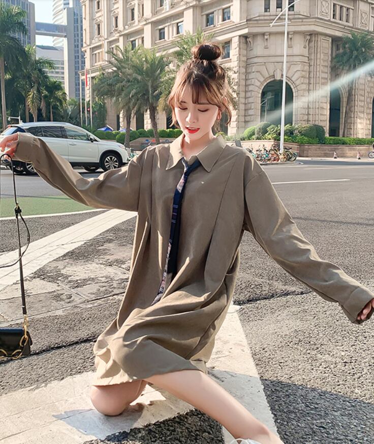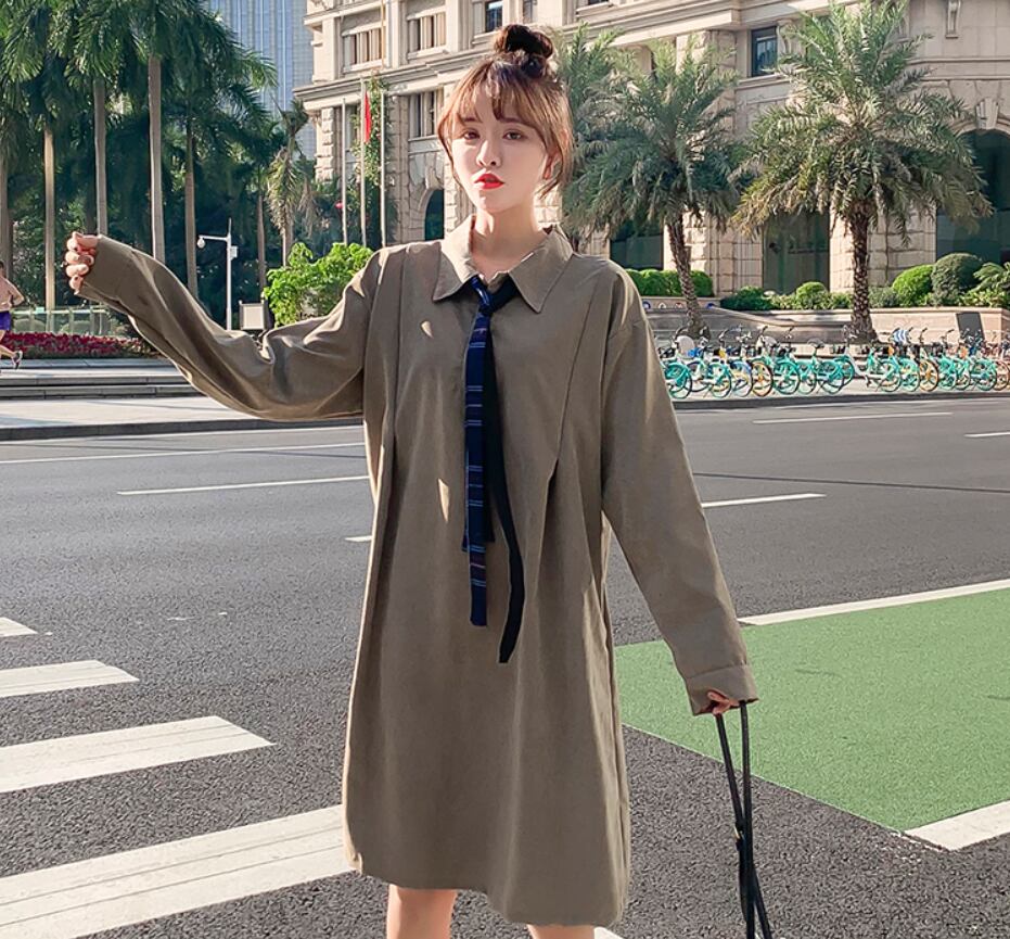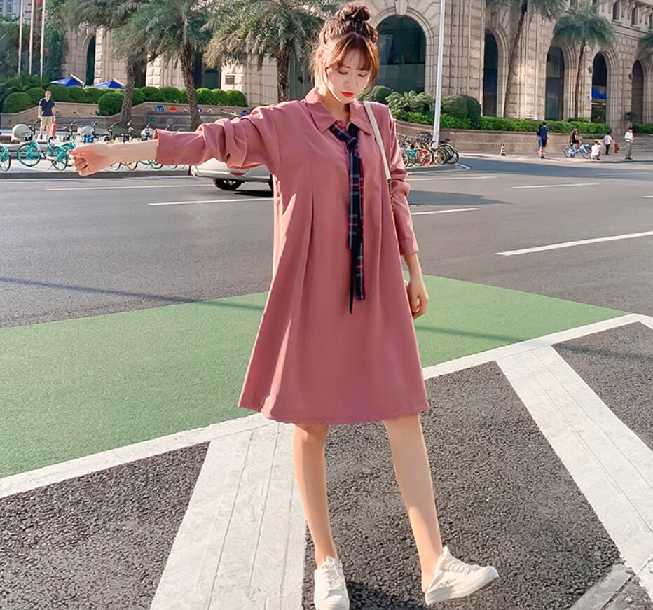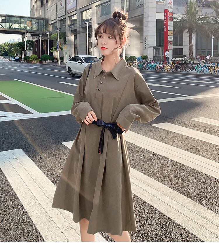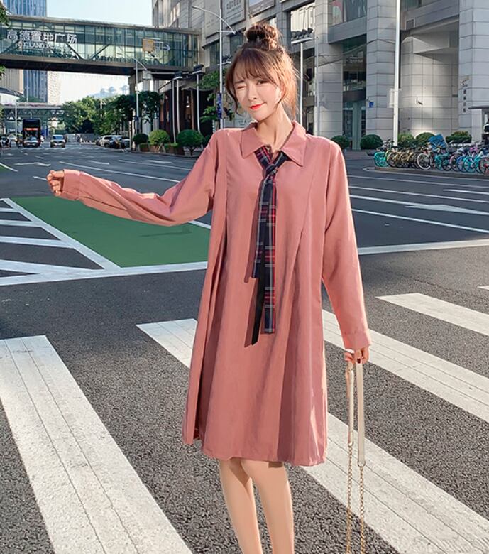 3way ワンピース 膝丈 ひざ丈 袖あり 長袖 襟付き Aライン ベルト かわいい シンプル カジュアル ガーリー 無地 チェック柄 春 秋 10代 20代 30代 レディース 女性用 お出かけ 着回し 普段使い 楽ちん 体型カバー M L 緑 グリーン ピンク