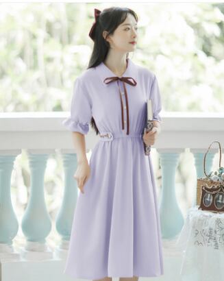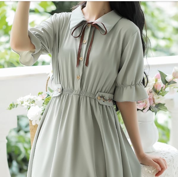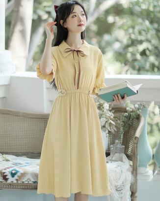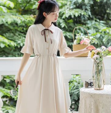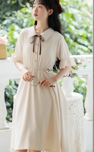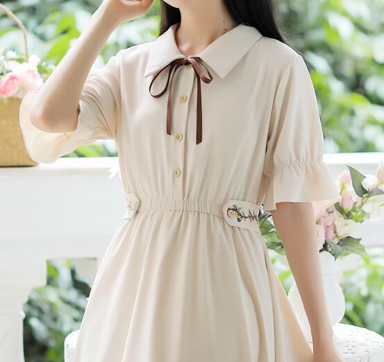 ガーリー半袖膝丈ワンピース 膝丈 袖あり 綿 リボン 爽やか 大人スタイル 大人可愛い きれいめ シンプル カジュアル 大人 上品 おしゃれ かっこいい レトロ アジアン 大人可愛い 大人女子 こなれ感 ラブリー キュート 個性的 存在感 無地 春 秋 冬 10代 20代 30代 40代 50代 レディース ママ 女の子 オフィス ビジネス OL 通勤 学生 通学 デート お出かけ 女子会 休日 リゾート 旅行 着回し コーデ スタイル モテ サイズ