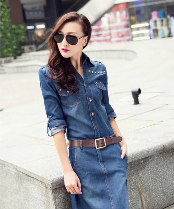 デニムシャツワンピース ワンピース シャツワンピース デニムワンピース ミモレ ミモレ丈 袖あり 長袖 襟付き Iライン ウエストマーク ハイウエスト 前開き デニム かわいい 大人可愛い きれいめ シンプル カジュアル 大人 おしゃれ お洒落 レトロ 大人可愛い 大人女子 こなれ感 ラフ キュート ガーリー 個性的 モダン 主役級 存在感 抜け感 無地 春 秋 10代 20代 30代 レディース 学生 通学 デート お出かけ 女子会 休日 着回し 普段使い 重ね着 サイズ M L XL 2XL 3XL