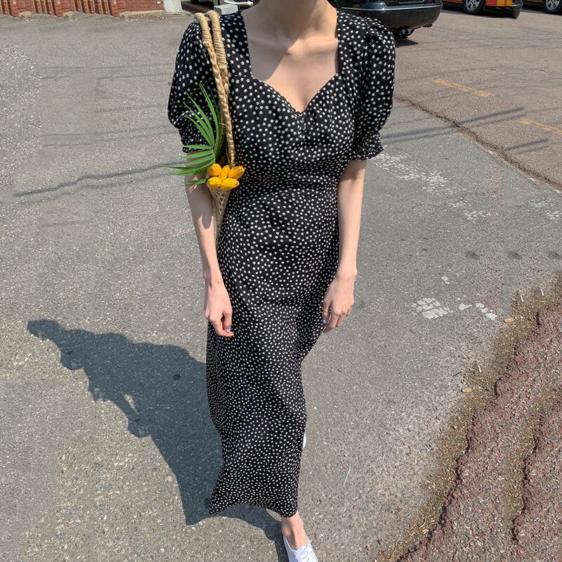 小花柄ワンピース ワンピース フレアワンピース ワンピドレス ロング ロング丈 袖あり 半袖 パフスリーブ スクエアネック スリム ウエストマーク ハイウエスト かわいい 大人可愛い きれいめ シンプル カジュアル 大人 おしゃれ お洒落 レトロ 大人可愛い 大人女子 こなれ感 ラフ キュート ガーリー 個性的 モダン 主役級 存在感 抜け感 柄 小花柄 春 夏 10代 20代 30代 レディース 学生 通学 デート お出かけ 女子会 休日 着回し 普段使い 重ね着 サイズ S M L XL ブラック