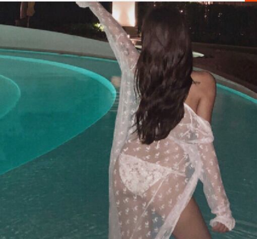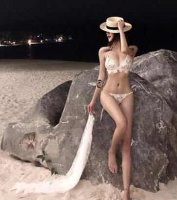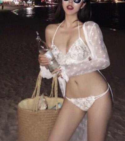 セクシーなホワイトレースビキニと羽織りの3点セットです。
