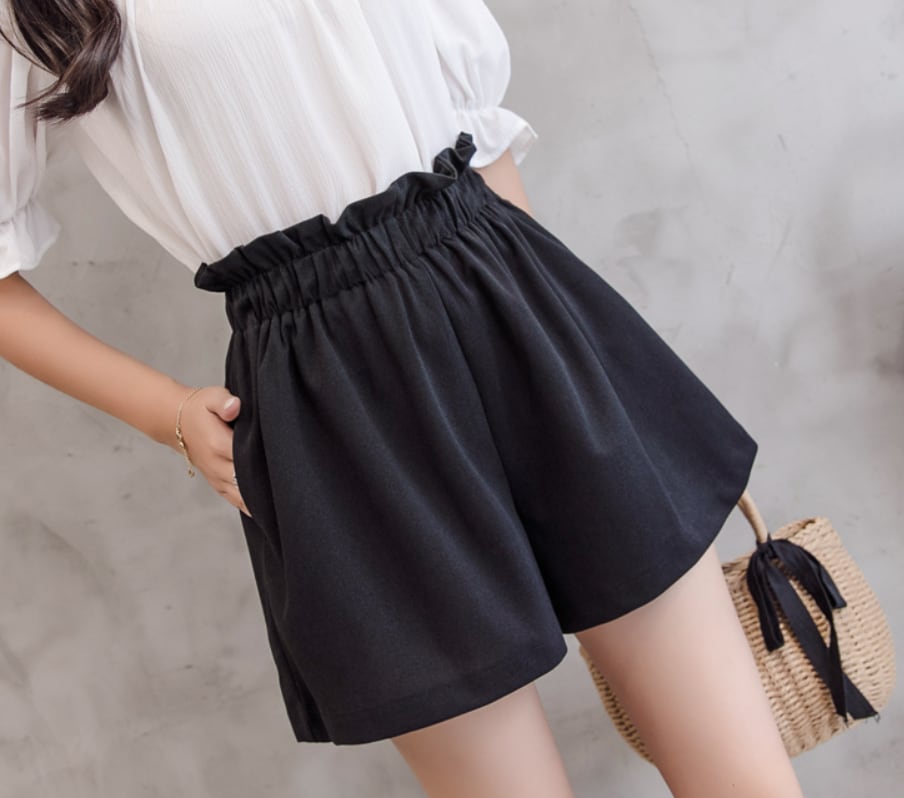 ボトムス パンツ ショートパンツ ミニ丈 Aライン ハイウエスト ウエストゴム 伸縮性 ポリエステル 薄手 かわいい きれいめ シンプル カジュアル こなれ感 無地 夏 10代 20代 レディース 女性用 デート お出かけ 休日 リゾート 旅行 海 着回し 普段使い 楽ちん S M L XL 2XL 黒 ブラック 青 ブルー ピンク