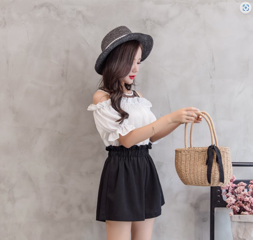 ハイウエストに裾が広がるAラインシルエットが美脚効果抜群のショートパンツ。