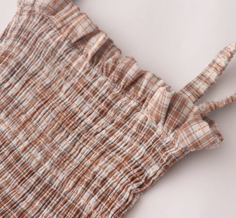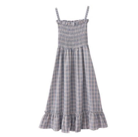 ナチュラルな雰囲気のチェック柄ノースリーブワンピースです。