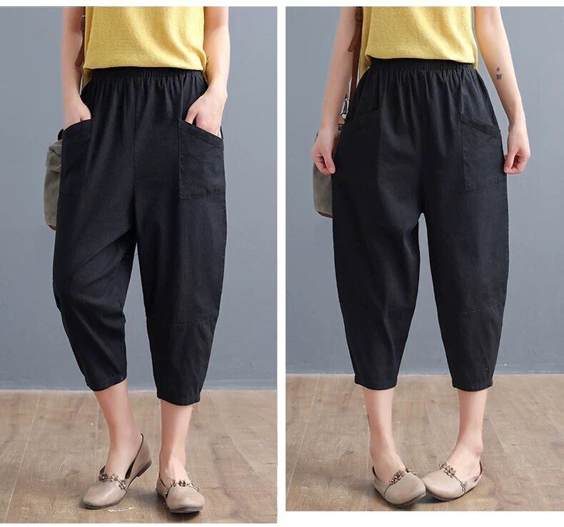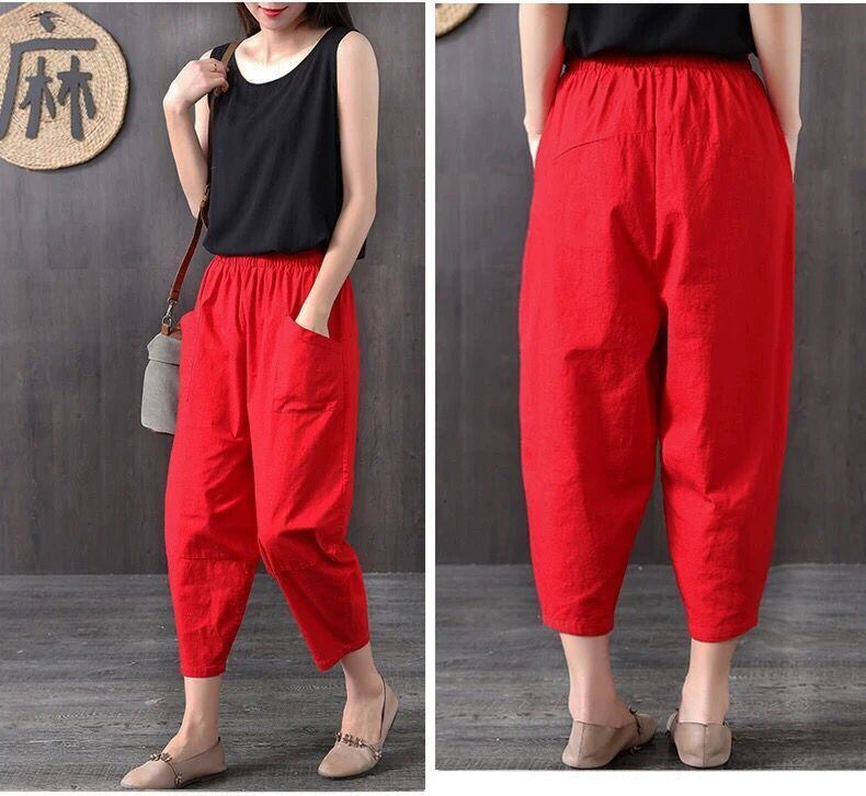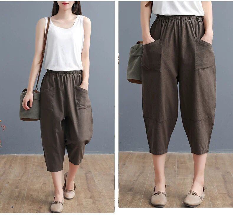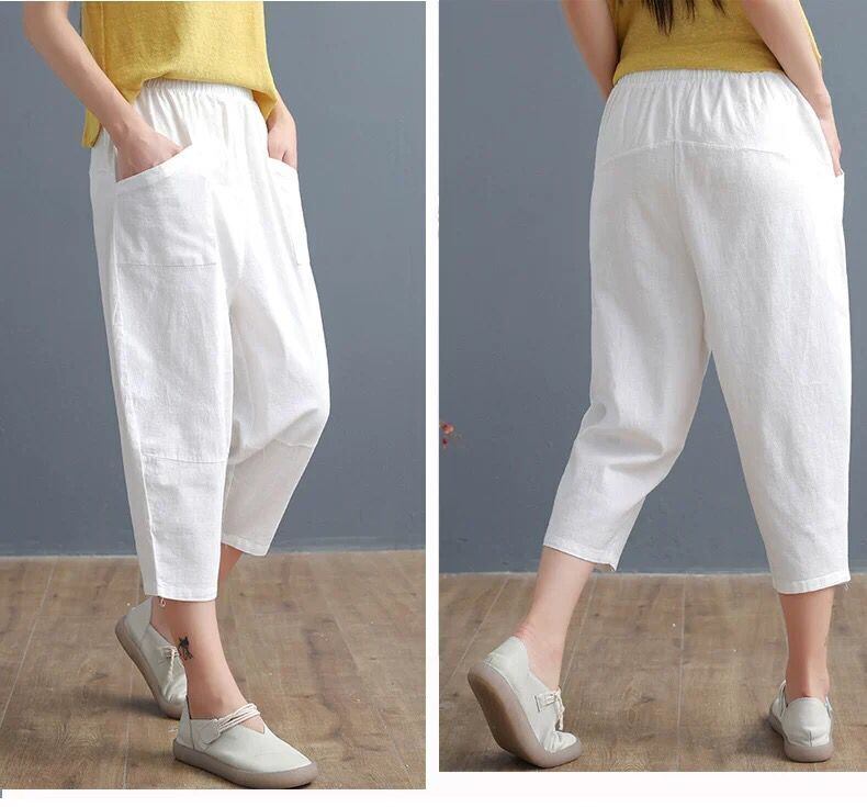 涼しげな綿麻生地でさらりと履きやすい七分丈パンツ。