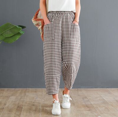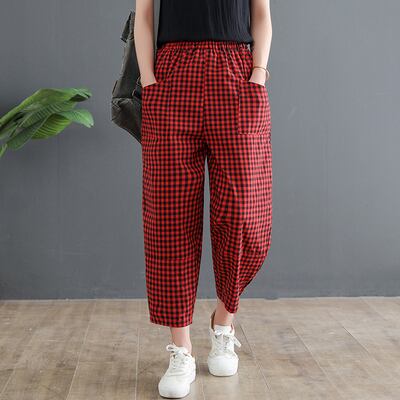 ボトムス パンツ 9分丈 7分丈 ポケット ウエストゴム 綿 麻 シンプル カジュアル 無地 チェック柄 格子柄 春 夏 10代 20代 30代 40代 50代 60代 レディース 女性用 ママ お出かけ 休日 リゾート 旅行 海 着回し 普段使い 楽ちん 体型カバー L XL 2XL 白 ホワイト 黒 ブラック 赤 レッド 茶色 ブラウン ネイビー
