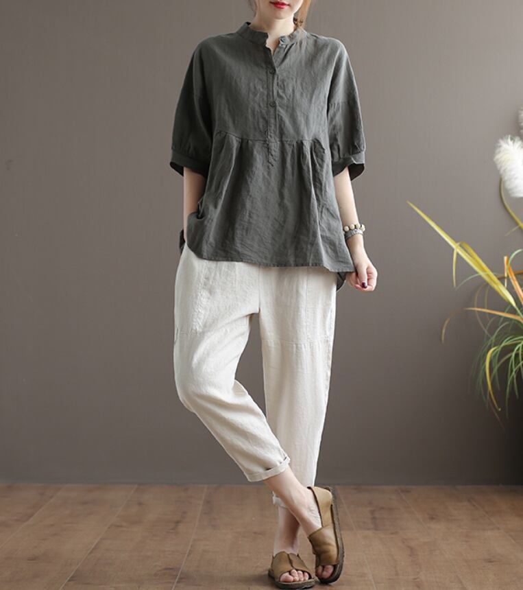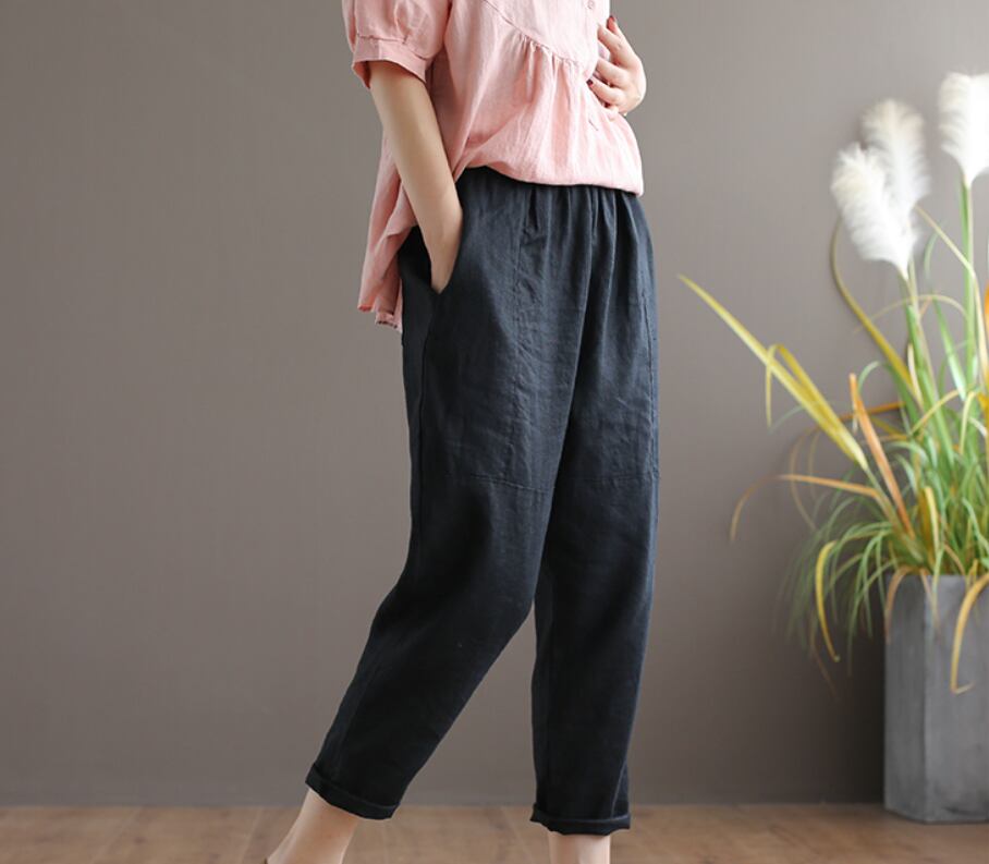 ウエストゴムと涼しげ素材でさらりと楽ちんに履ける七分丈パンツ。